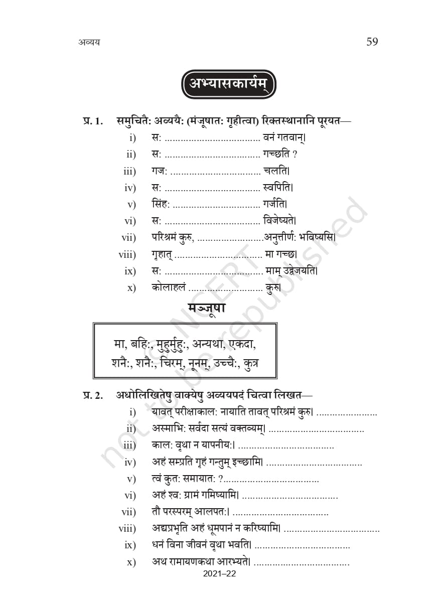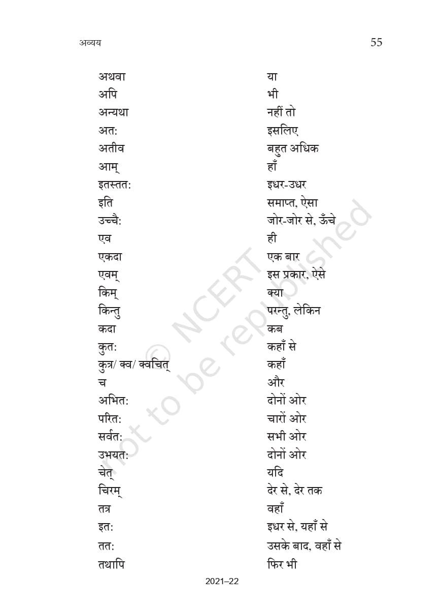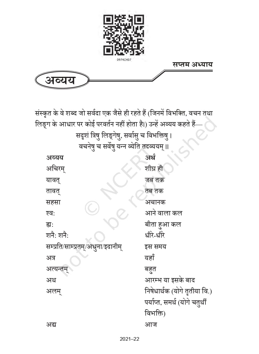 Class 10 Ncert Book Sanskrit व्याकरणवीथिः Chapter 7 – अव्यय