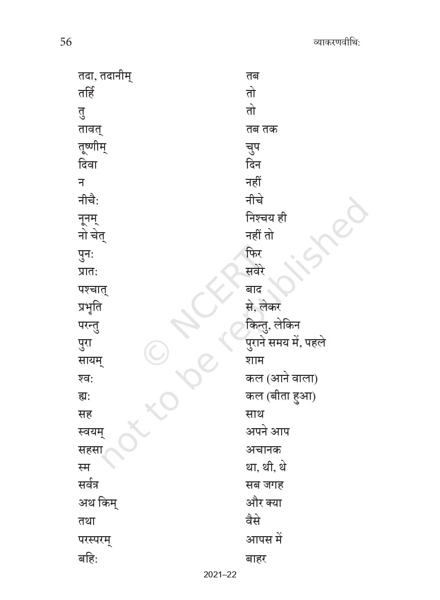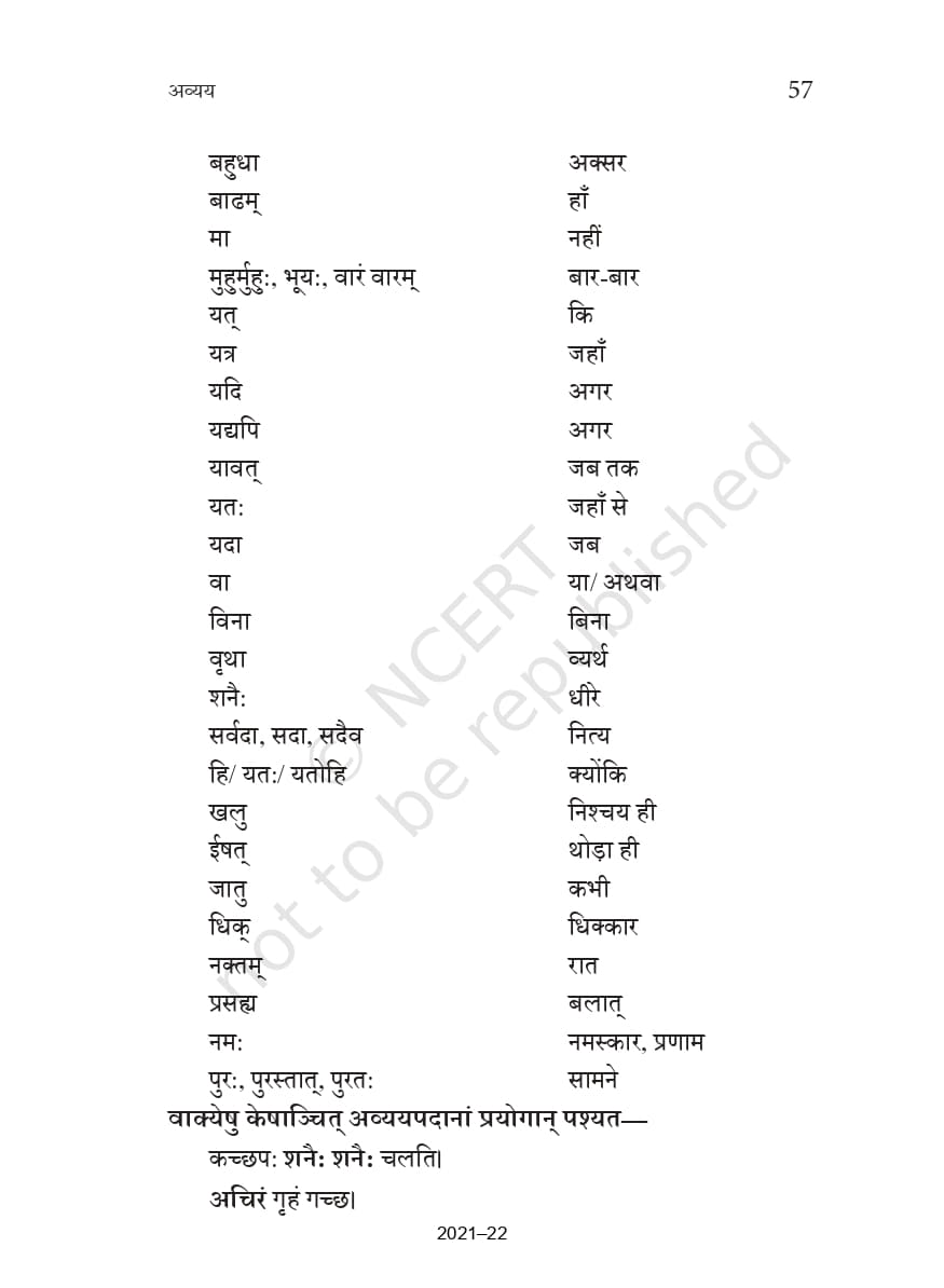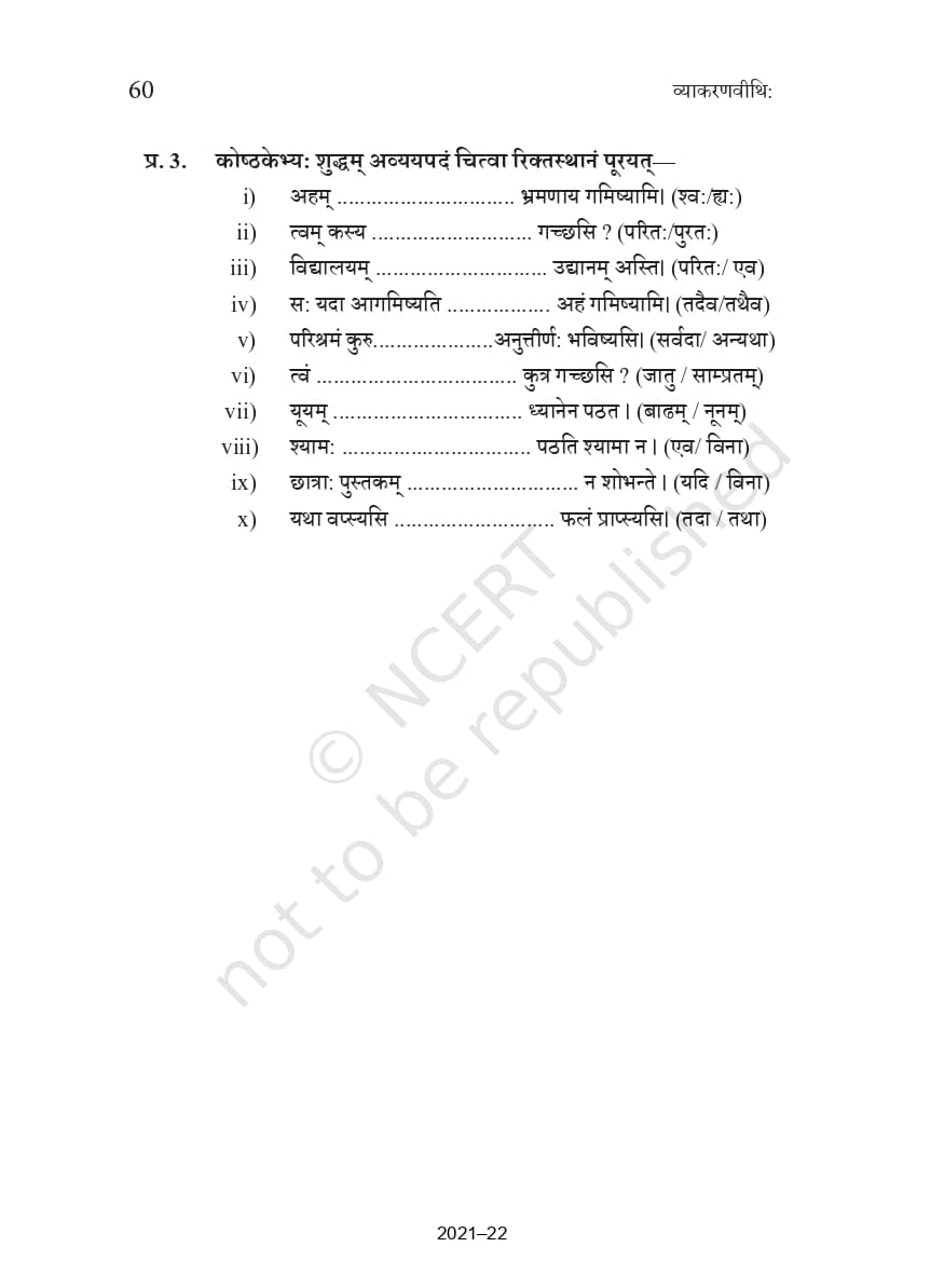 Class 10 Ncert Book Sanskrit व्याकरणवीथिः Chapter 7 – अव्यय