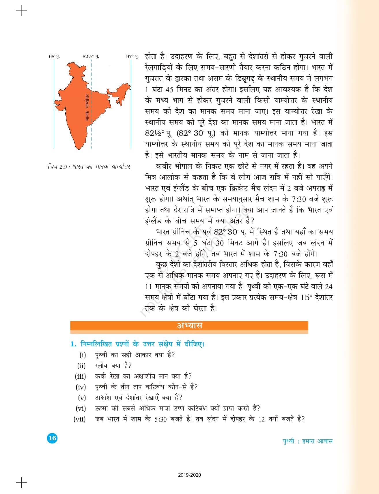Ncert Books Class 6 Social Science भूगोल ( पृथ्वी: हमारा आवास ) – Chapter 2 ग्लोब: अक्षांश एवं देशांतर