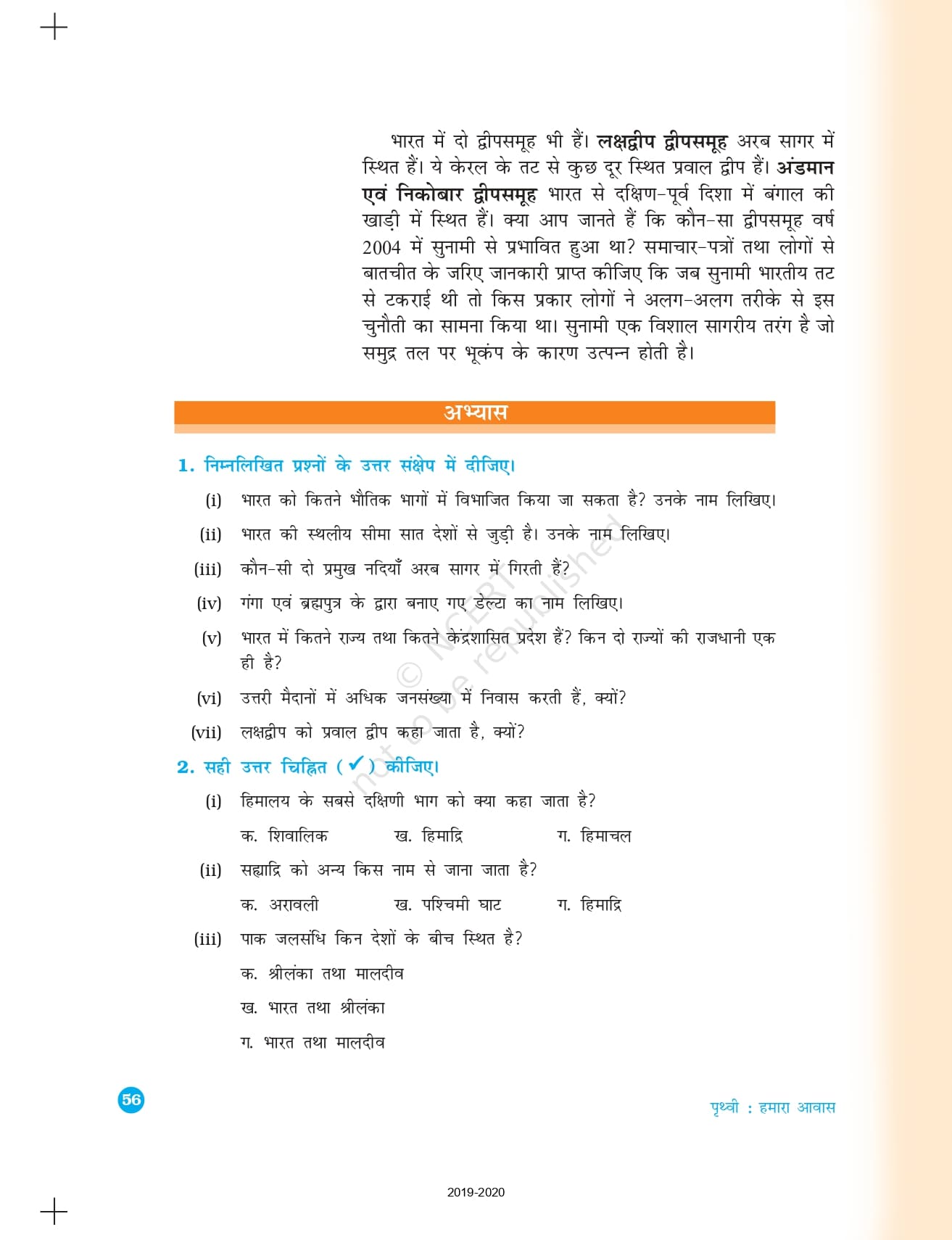 Ncert Books Class 6 Social Science भूगोल ( पृथ्वी: हमारा आवास ) – Chapter 7 हमारा देश: भारत