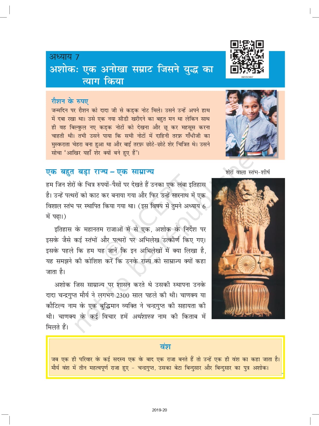 Class 6 Ncert Book Social Science इतिहास PDF Chapter 7 – अशोक: एक अनोखा सम्राट जिसने युद्ध का त्याग किया