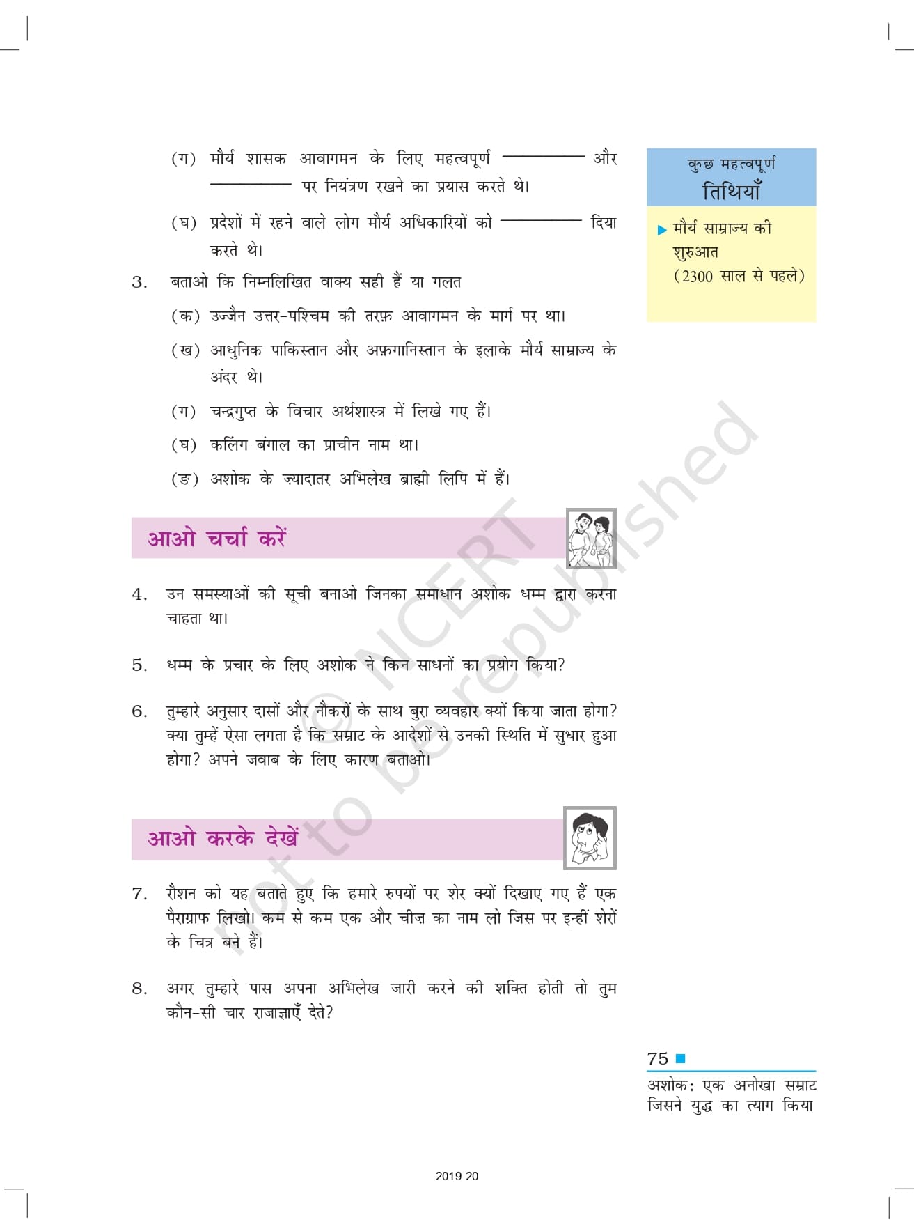 Ncert Books Class 6 Social Science इतिहास हमारे अतीत – I – Chapter 7 – अशोक: एक अनोखा सम्राट जिसने युद्ध का त्याग किया