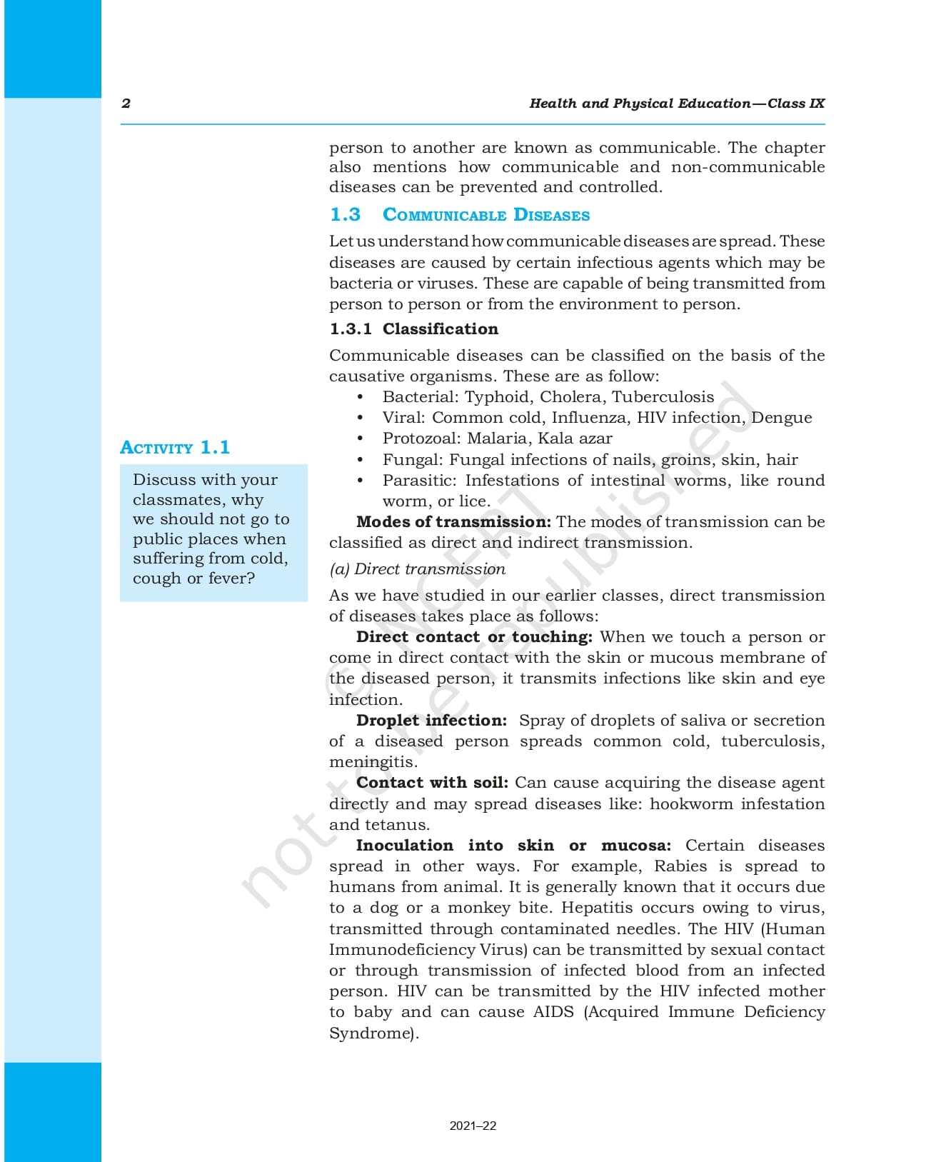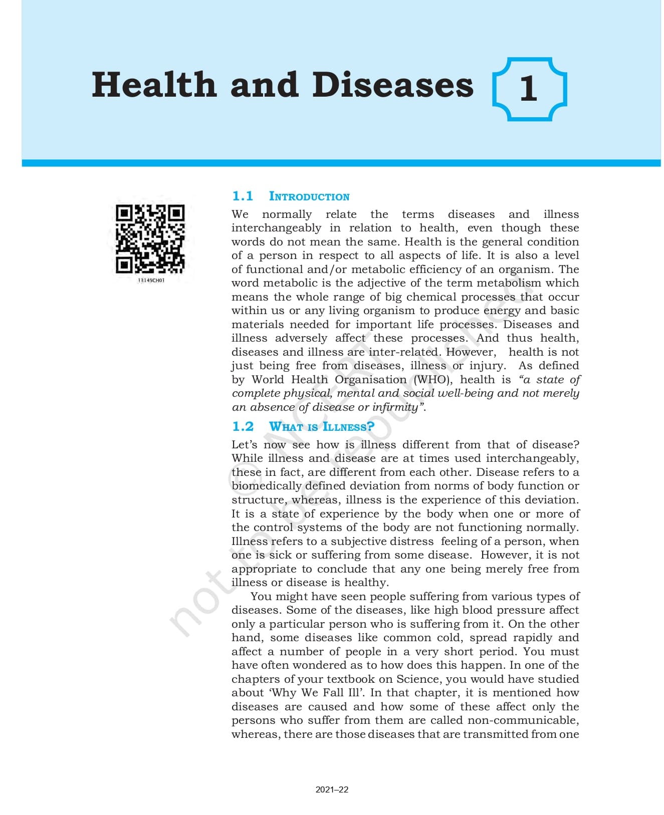 Ncert Books Class 9 Health and Physical Education – Chapter 1 – Health and Diseases