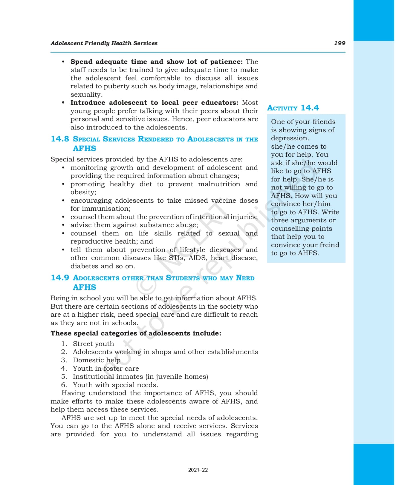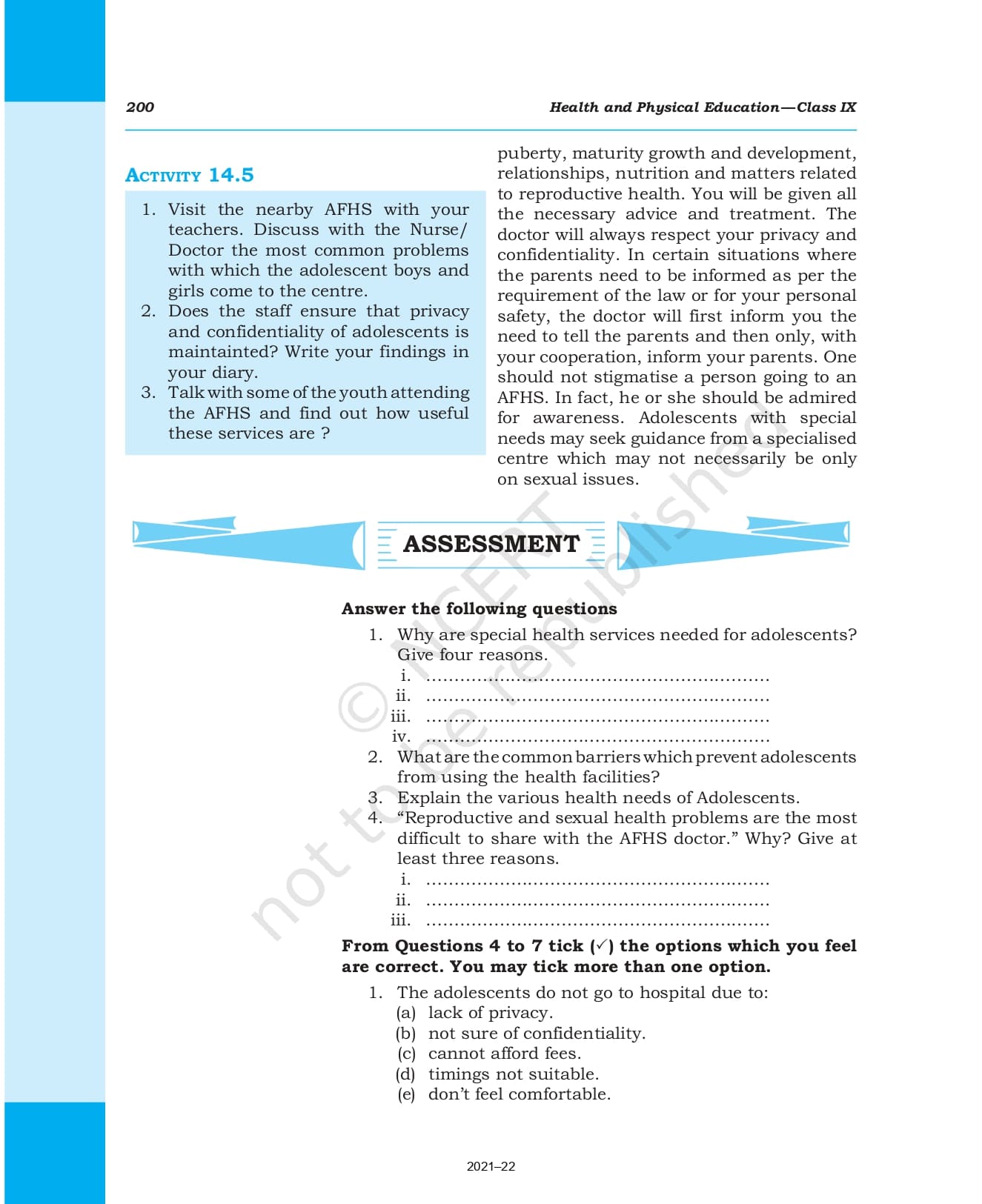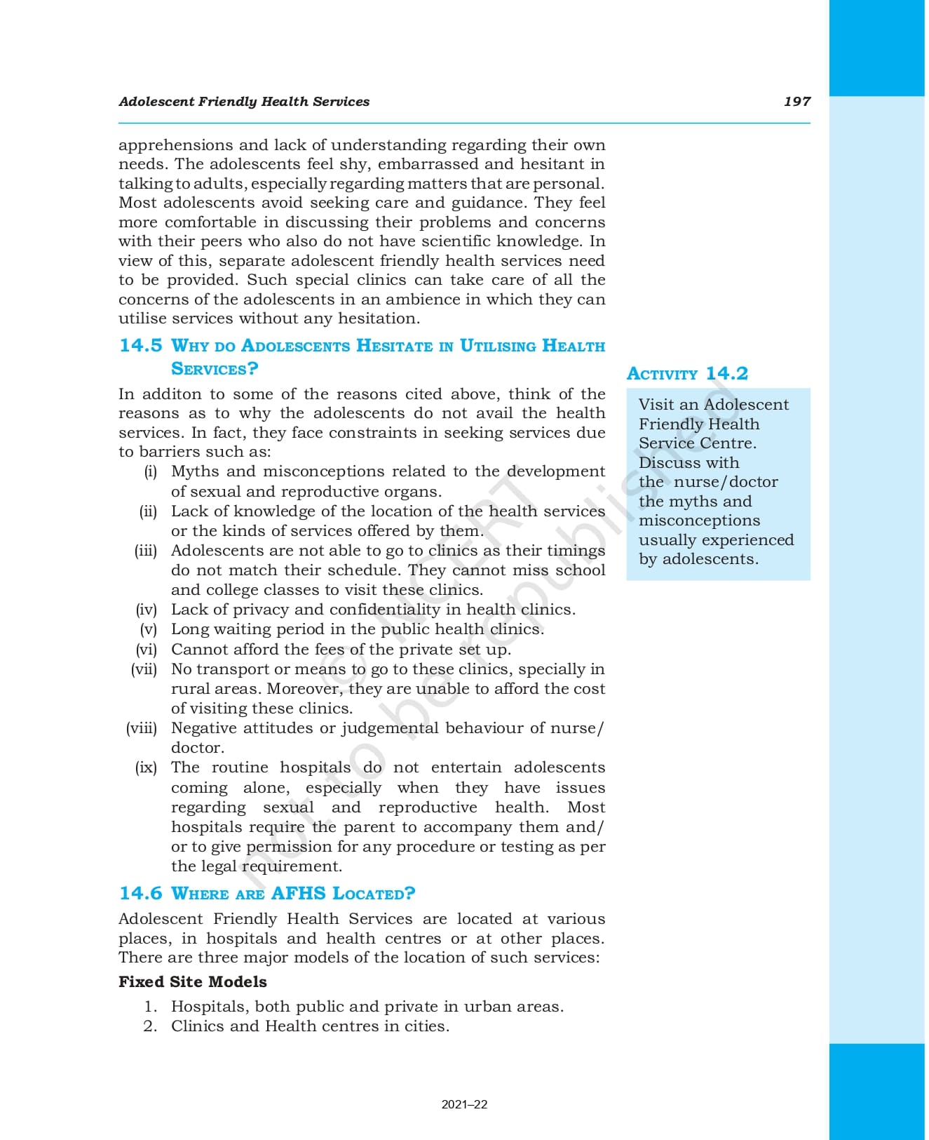 Ncert Books Class 9 Health and Physical Education – Chapter 14 – Adolescent Friendly Health Services