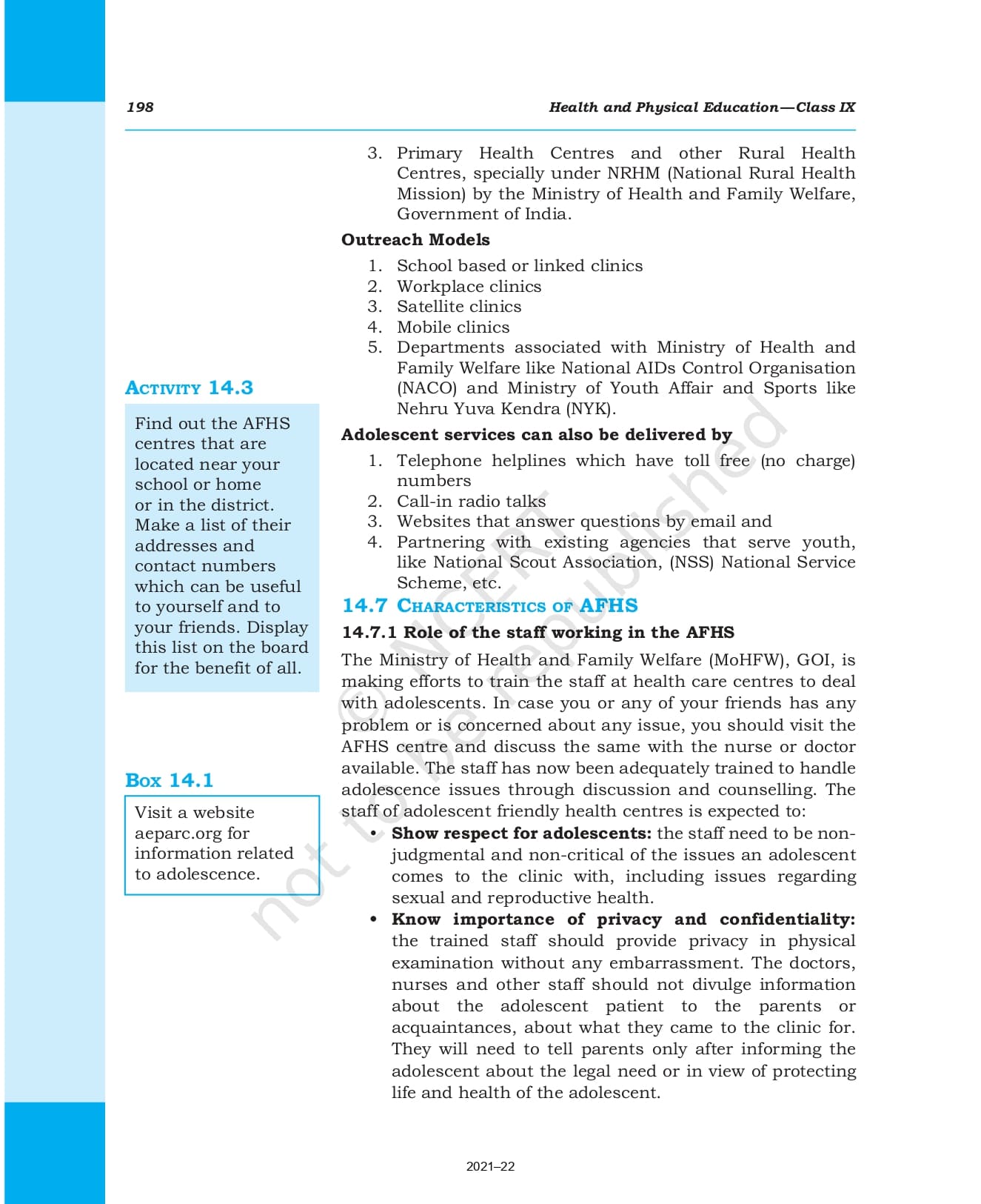 Class 9 Ncert Book Health and Physical Education Chapter 14 – Adolescent Friendly Health Services