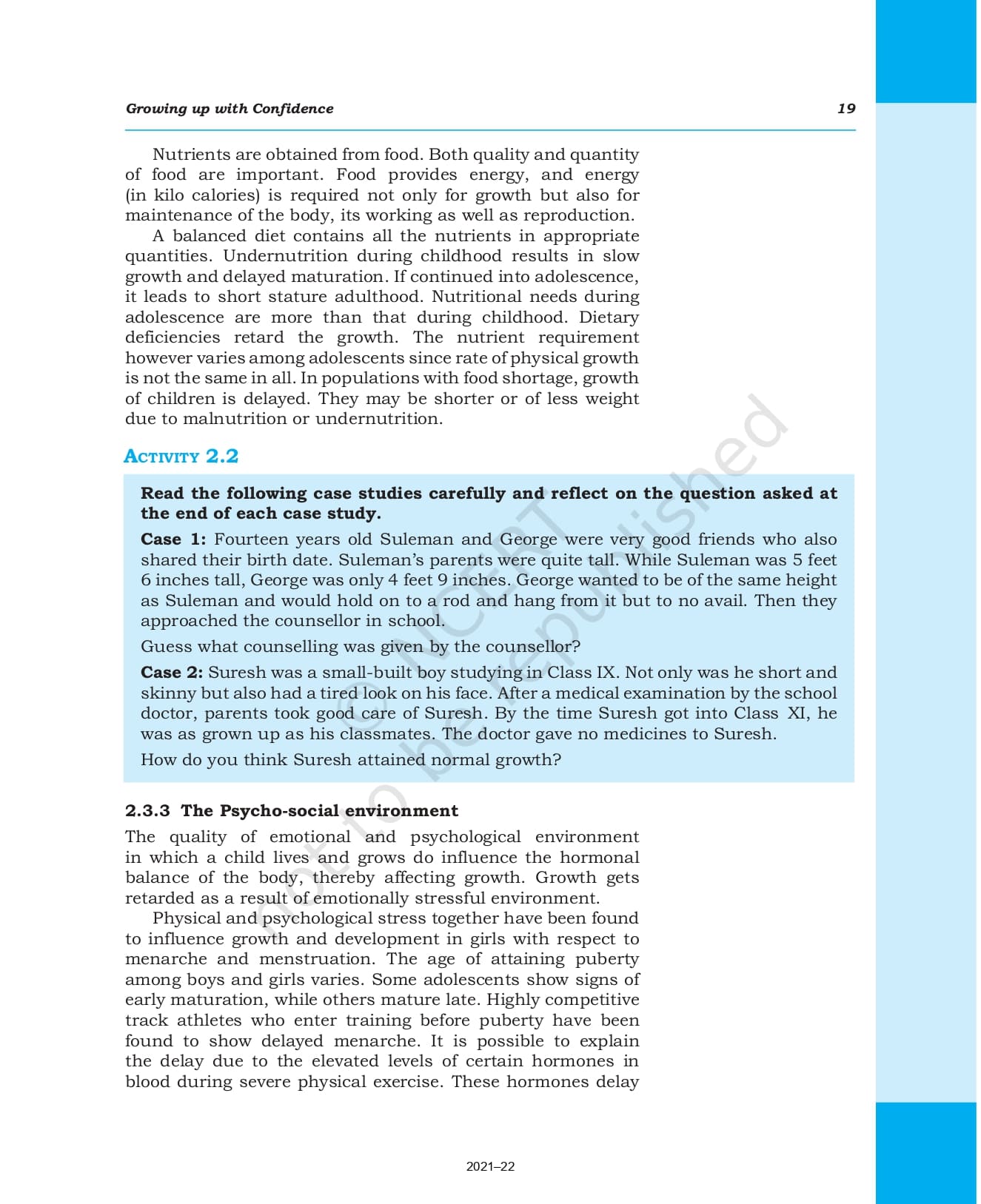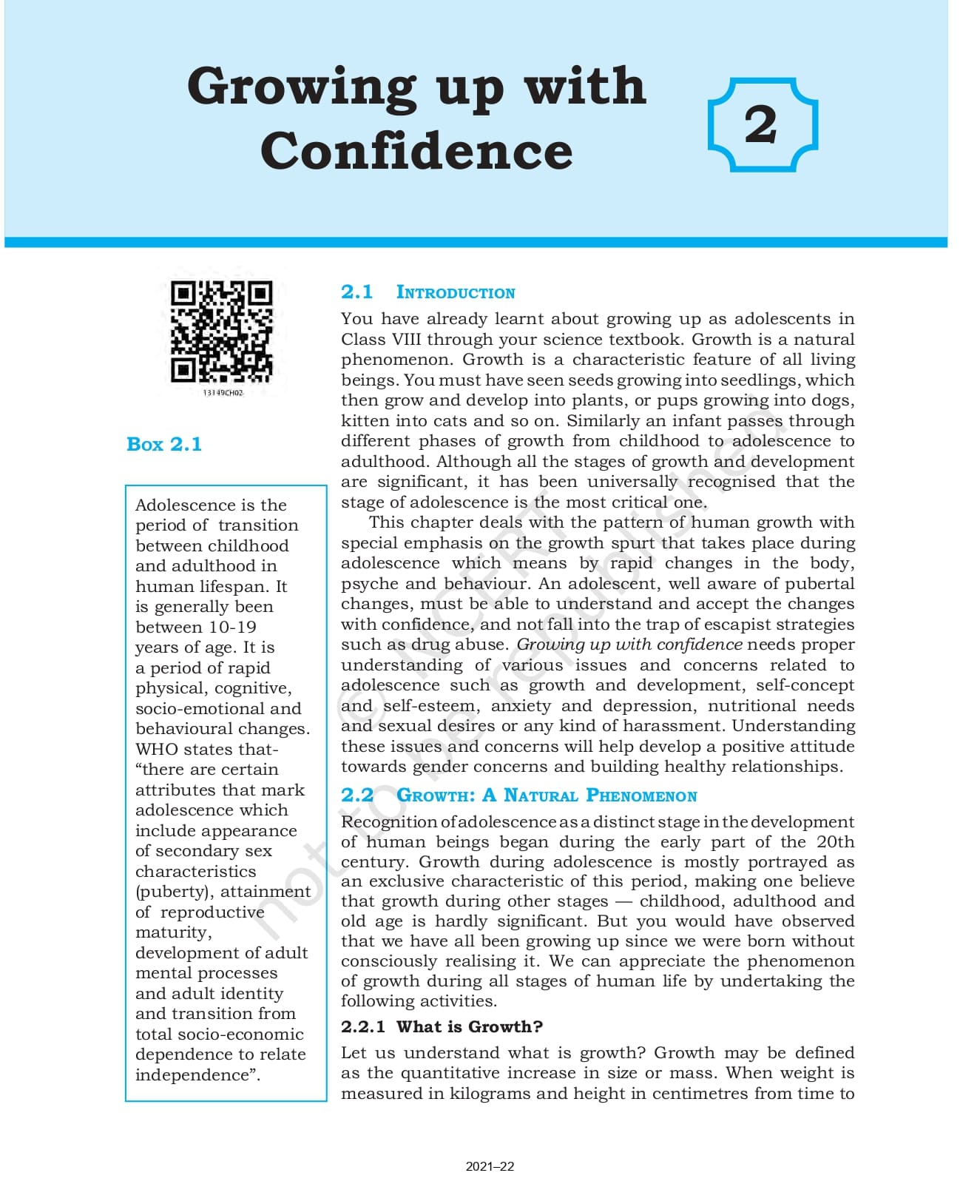 Class 9 Ncert Book Health and Physical Education Chapter 2 – Growing up with Confidence