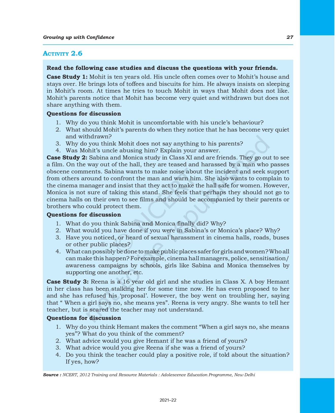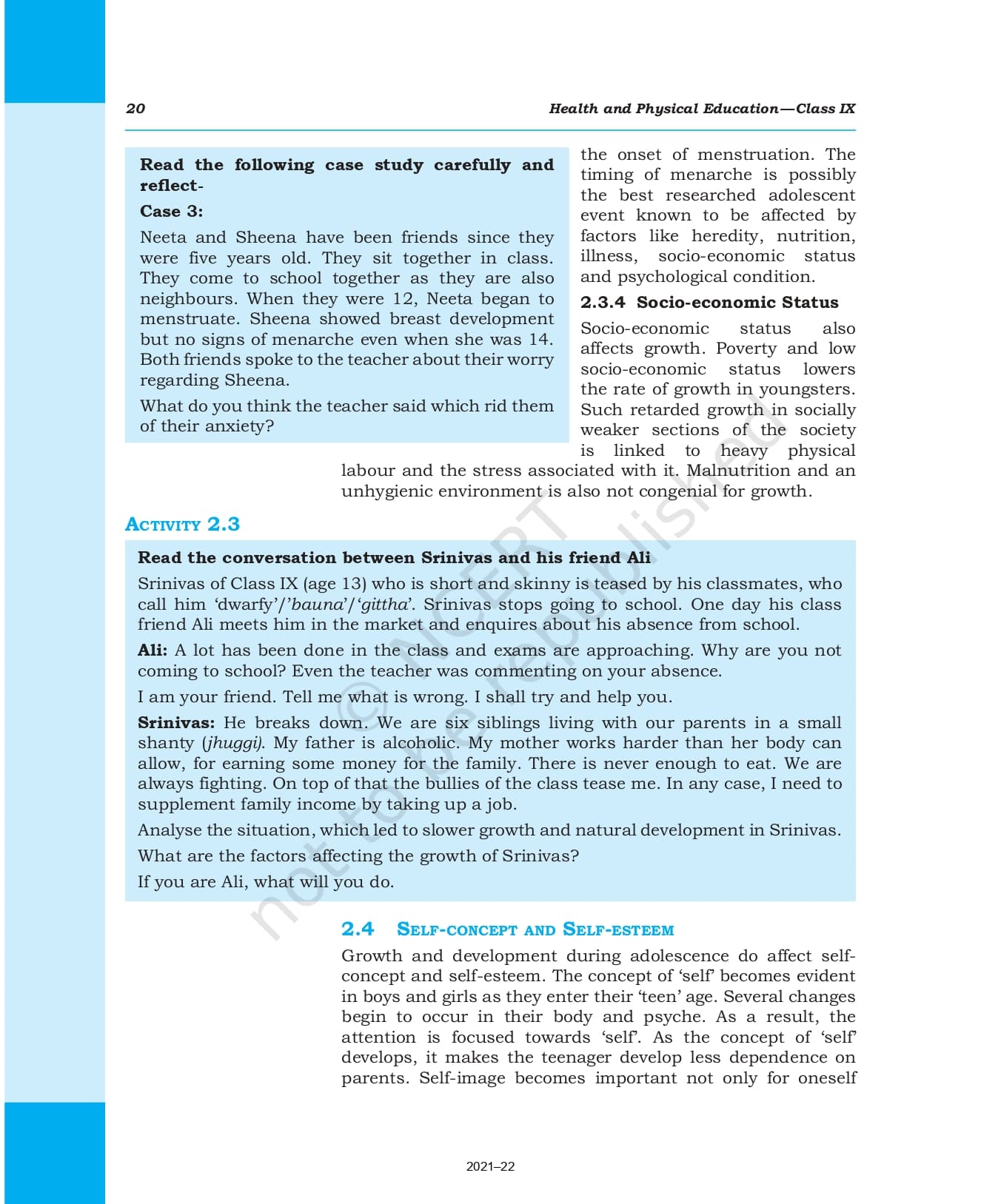 Ncert Books Class 9 Health and Physical Education – Chapter 2 – Growing up with Confidence