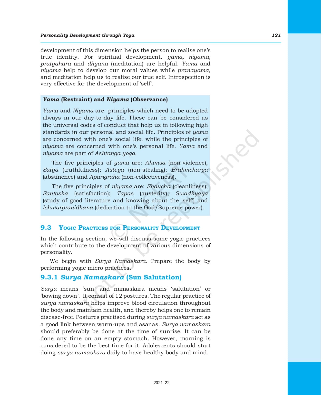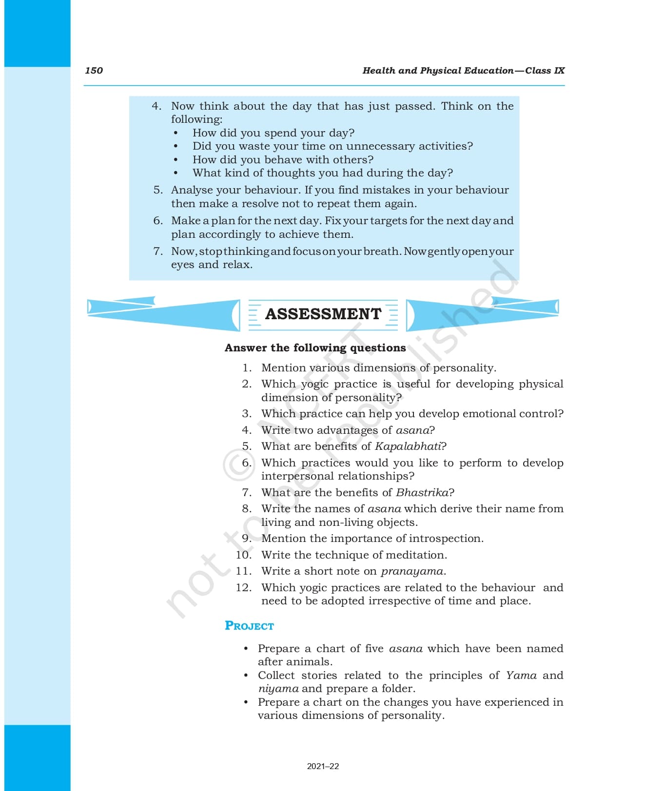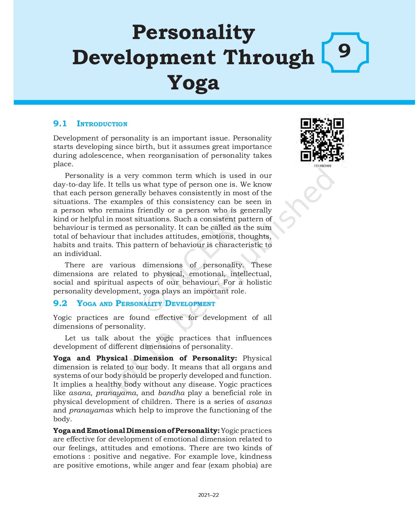 Class 9 Ncert Book Health and Physical Education Chapter 9 – Personality Development through Yoga