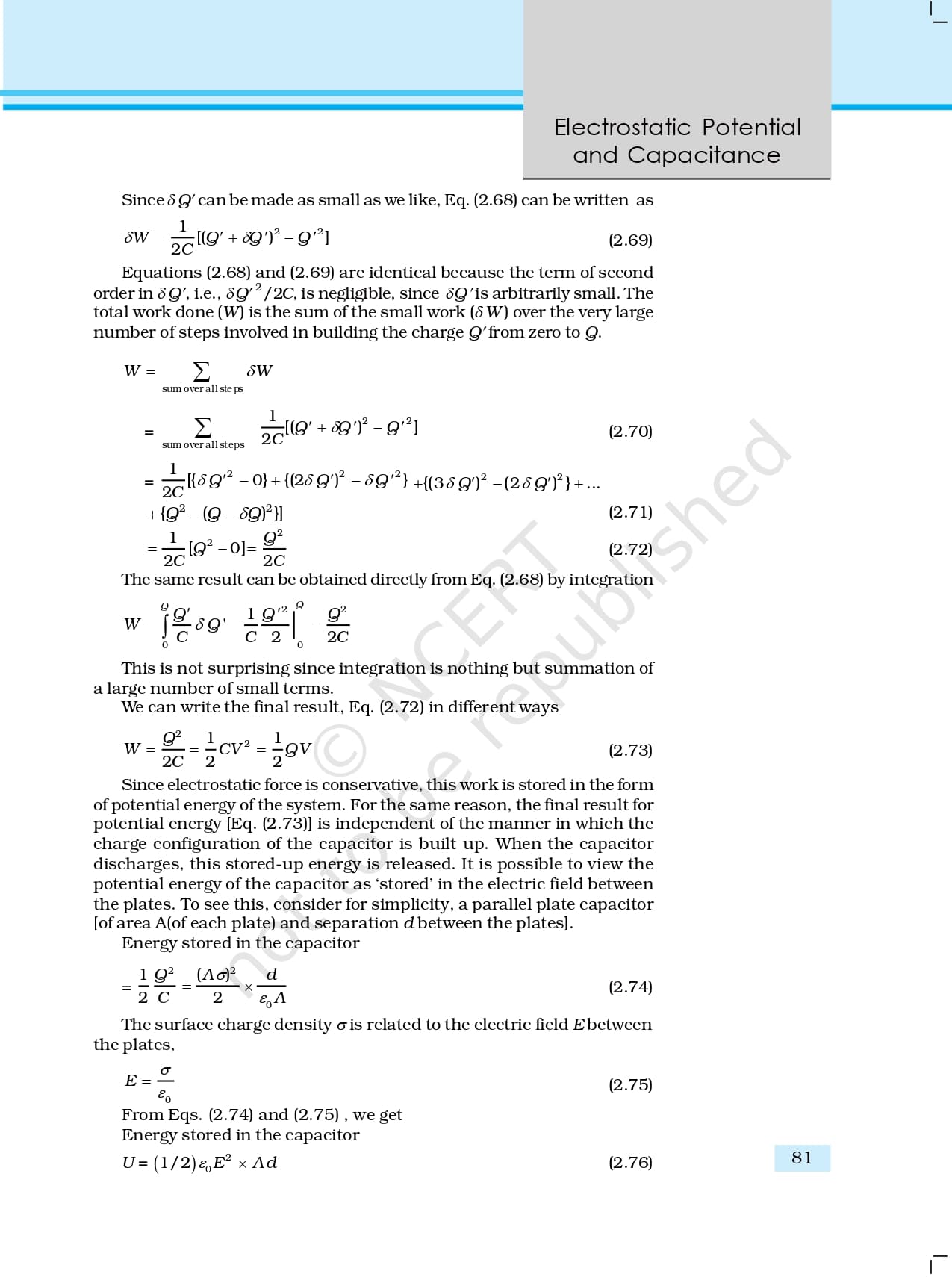 NCERT Book for Class 12 Physics Chapter 2 Electrostatic Potential and Capacitance