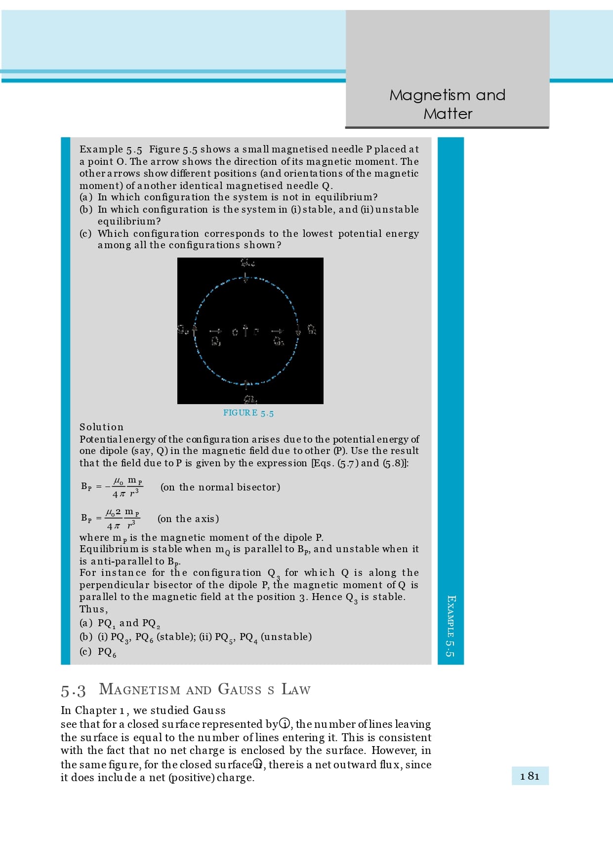 Here you can read Chapter 5 Magnetism and Matter of the NCERT Books for Class 12 Physics. You can also find links to Class 12 Physics Notes, NCERT Solutions, Important Questions, Previous Papers, etc. following each chapter. The important study material for Chapter 5 Magnetism and Matter from the NCERT Physics Books for Class 12 may be found below.
