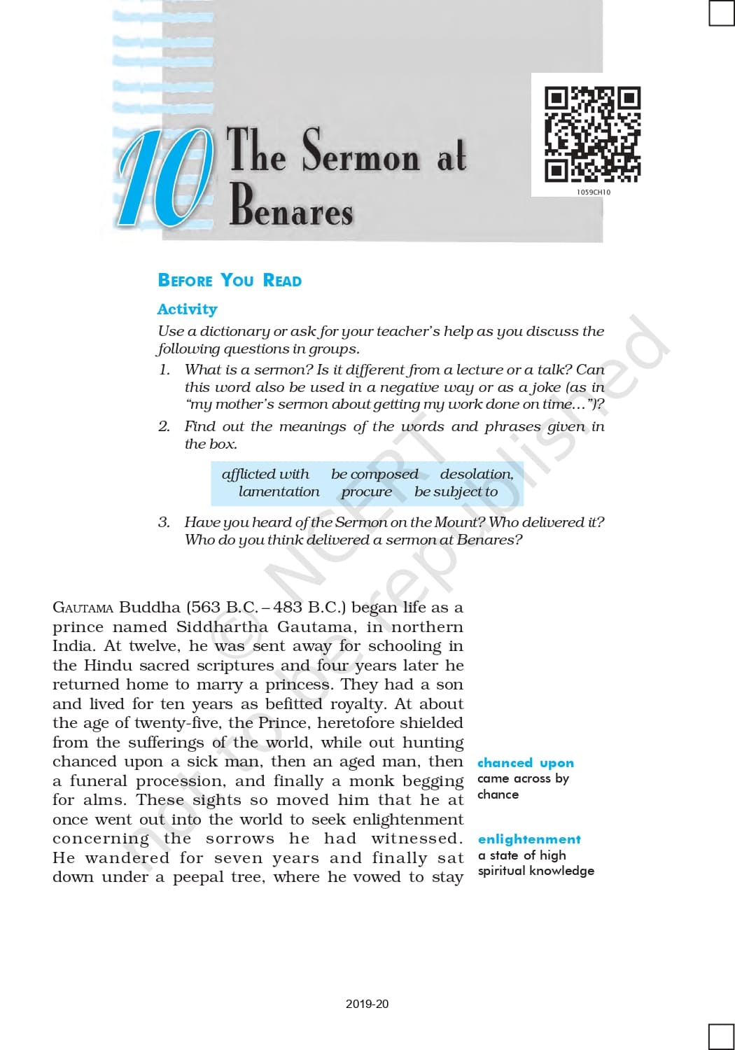 Ncert Books Class 10 English First Flight – Chapter 10 – The Sermon at Benares