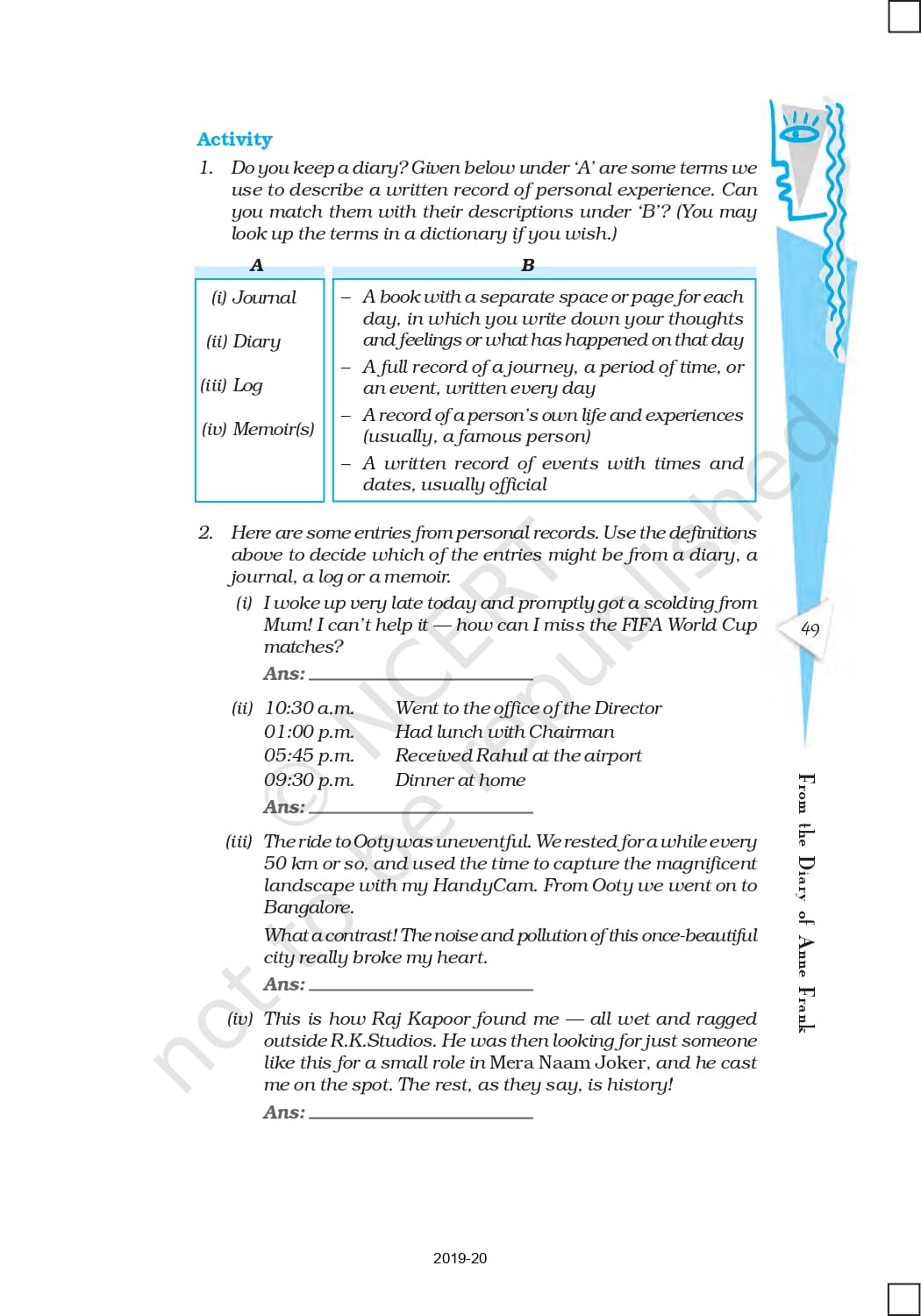 Ncert Books Class 10 English First Flight – Chapter 4 – From the Diary of Anne Frank