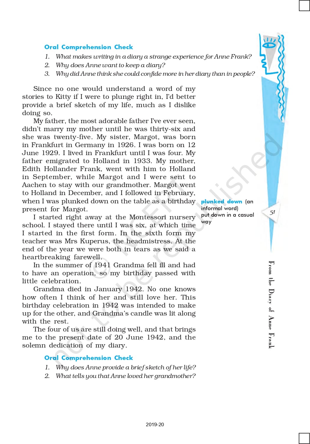 Class 10 Ncert Book English First Flight Chapter 4 – From the Diary of Anne Frank