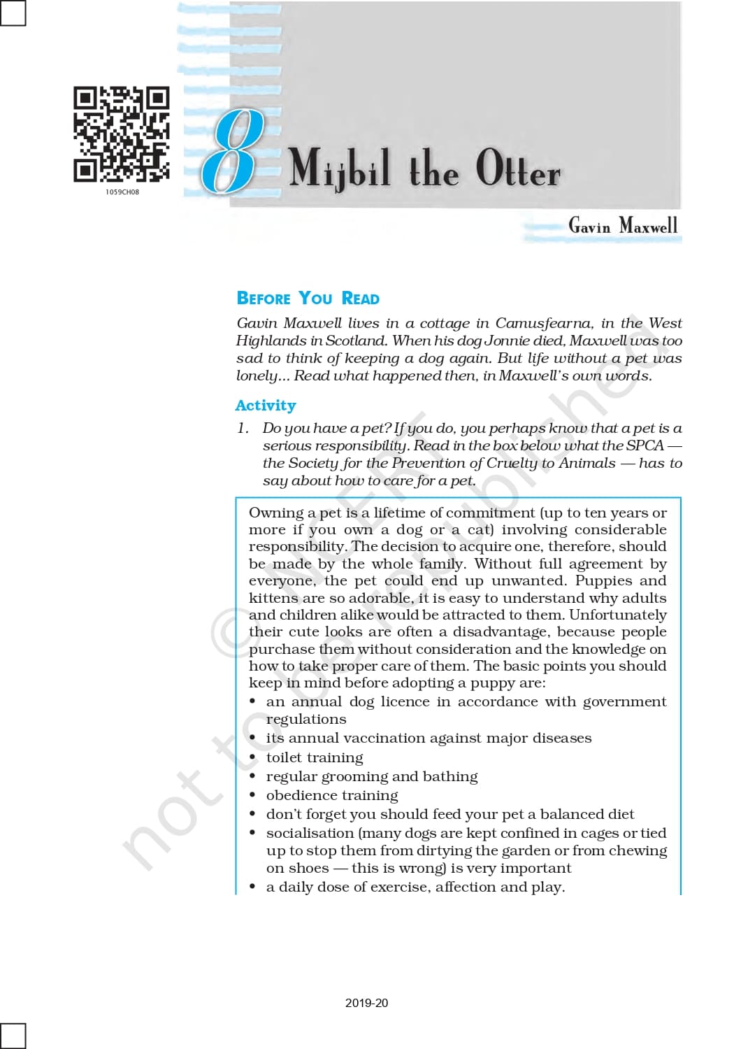 Class 10 Ncert Book English First Flight Chapter 8 – Mijbil the Otter