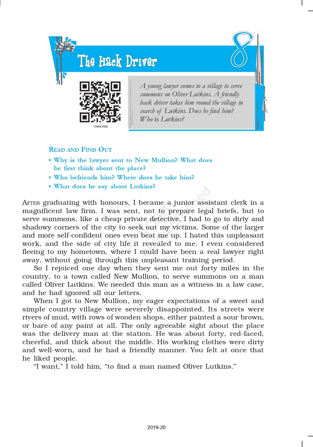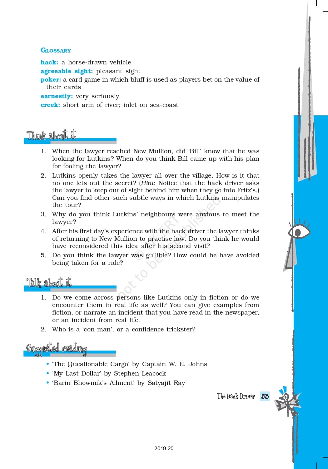 Class 10 Ncert Book English Footprints Without Feet Chapter 8 – The Hack Driver