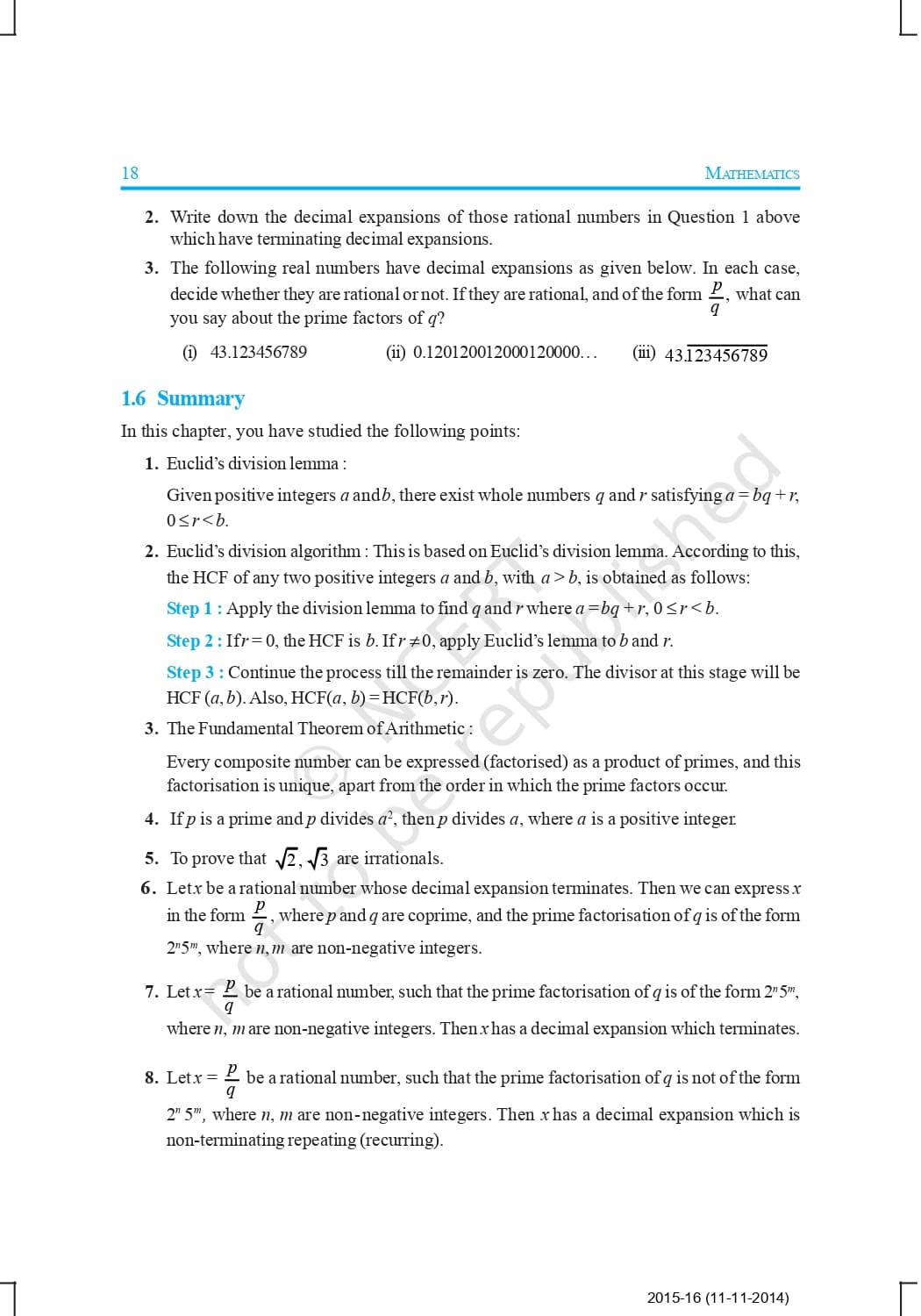 Class 10 Ncert Book Mathematics Chapter 1 – Real Numbers