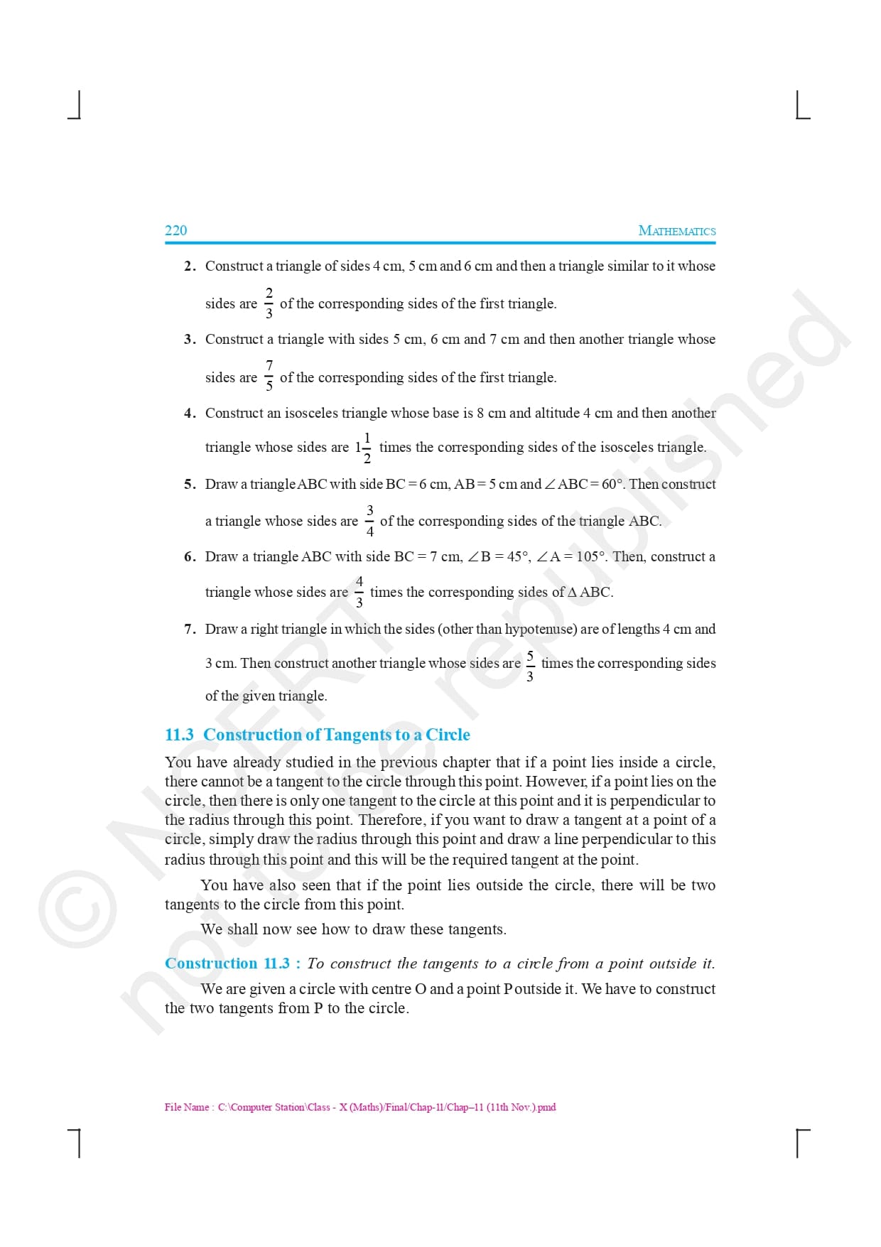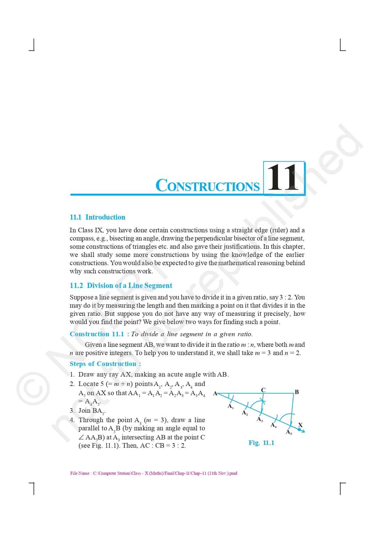 Class 10 Ncert Book Mathematics Chapter 11 – Constructions