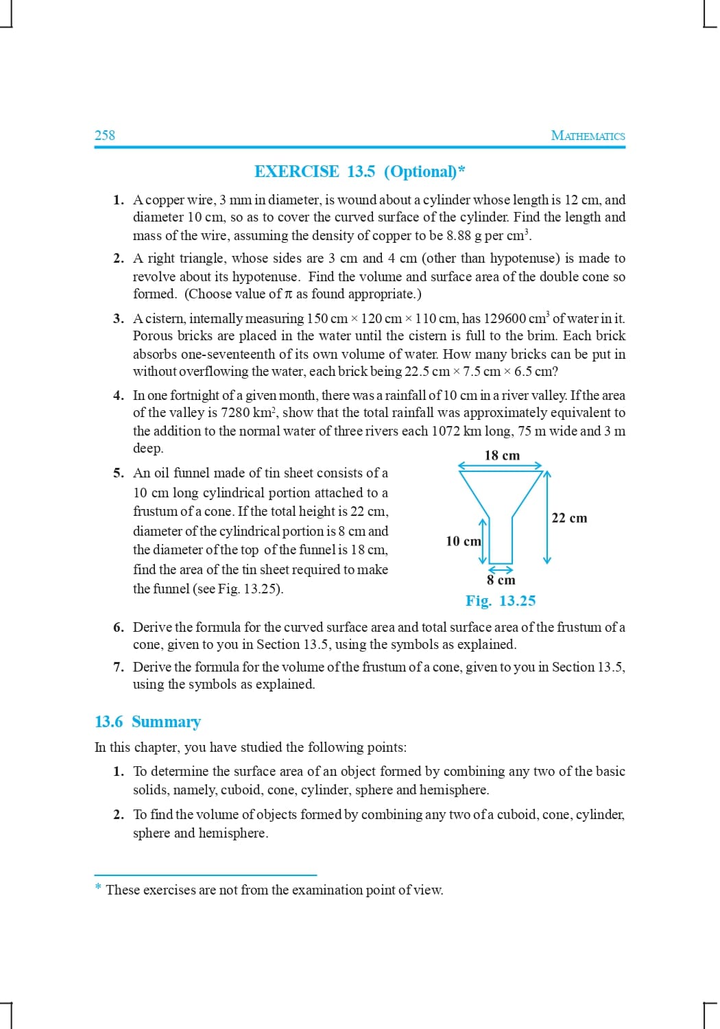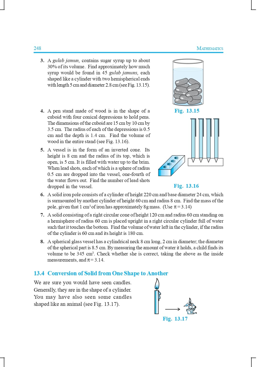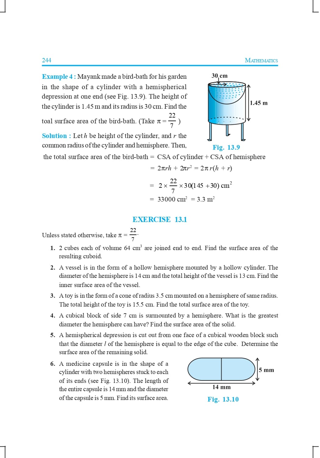 Class 10 Ncert Book Mathematics Chapter 13 – Surface Areas and Volumes