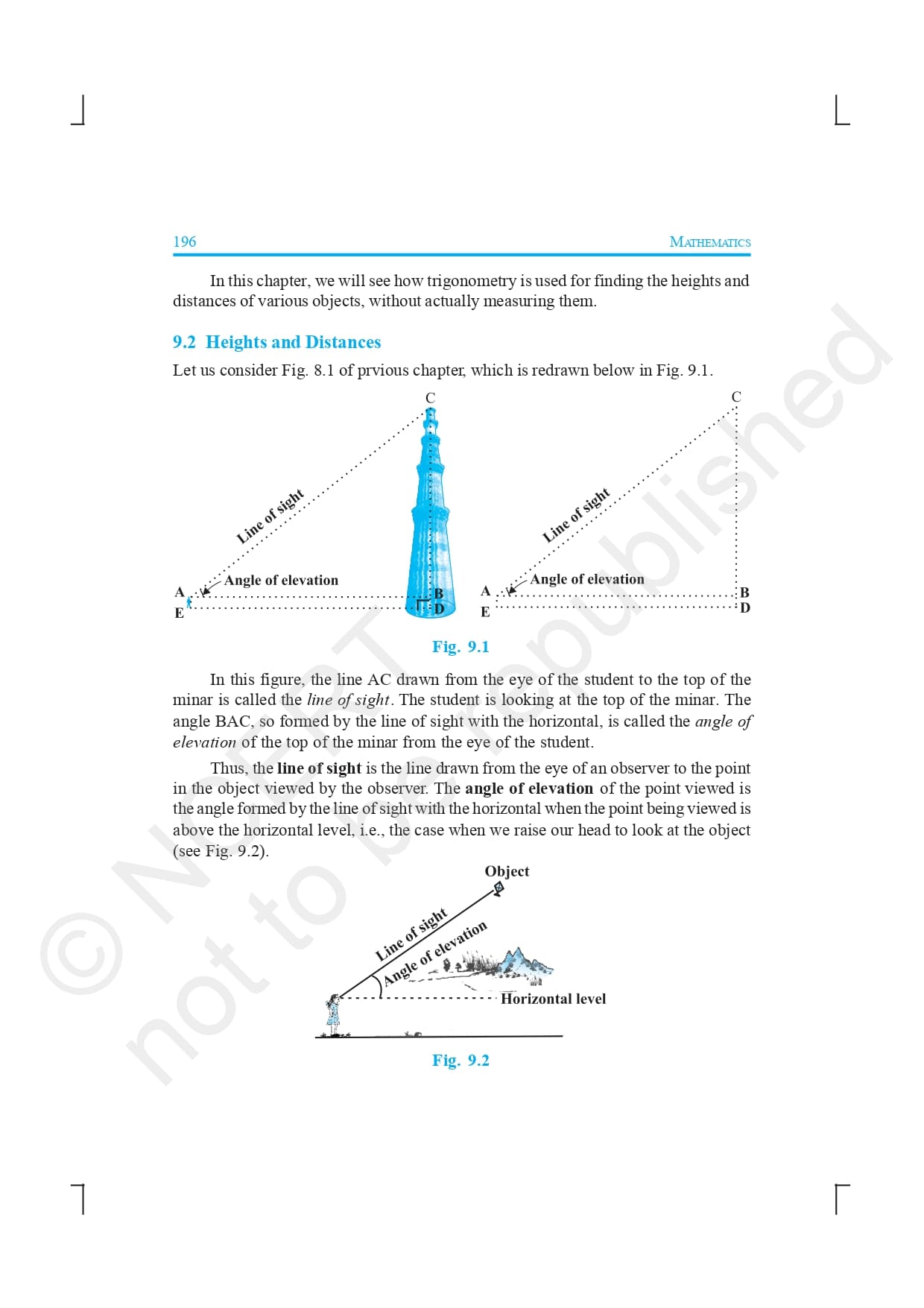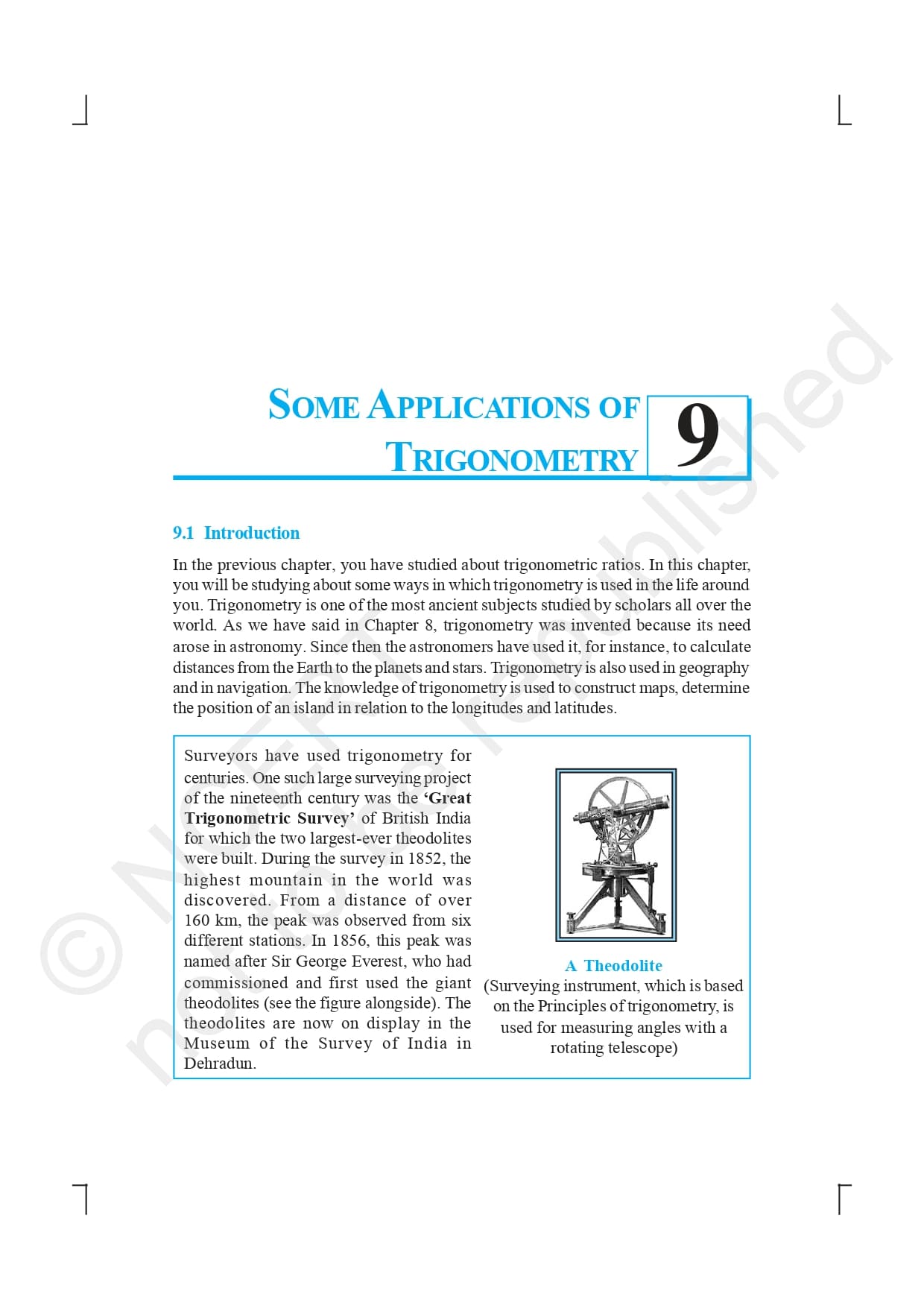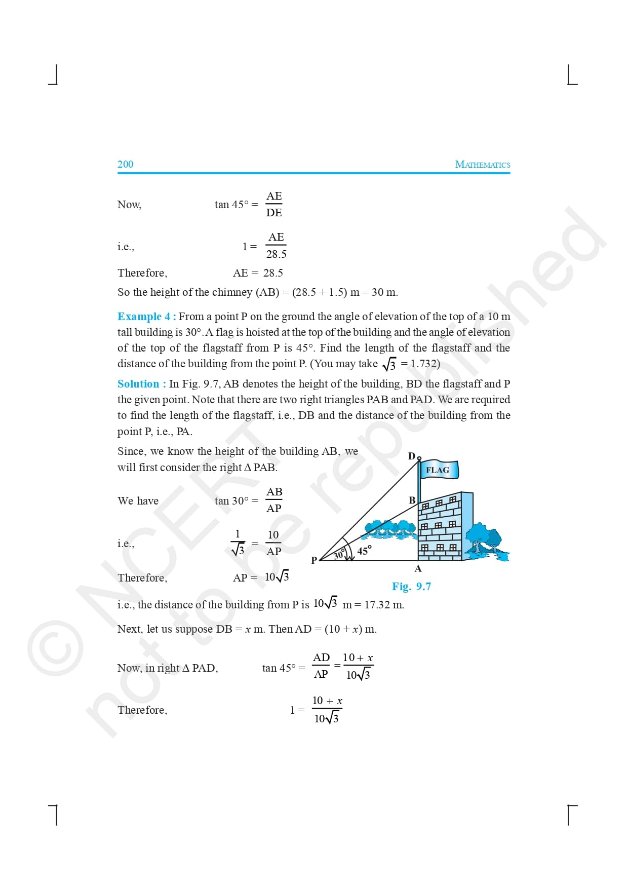 Ncert Books Class 10 Maths – Chapter 9 – Some Applications of Trigonometry