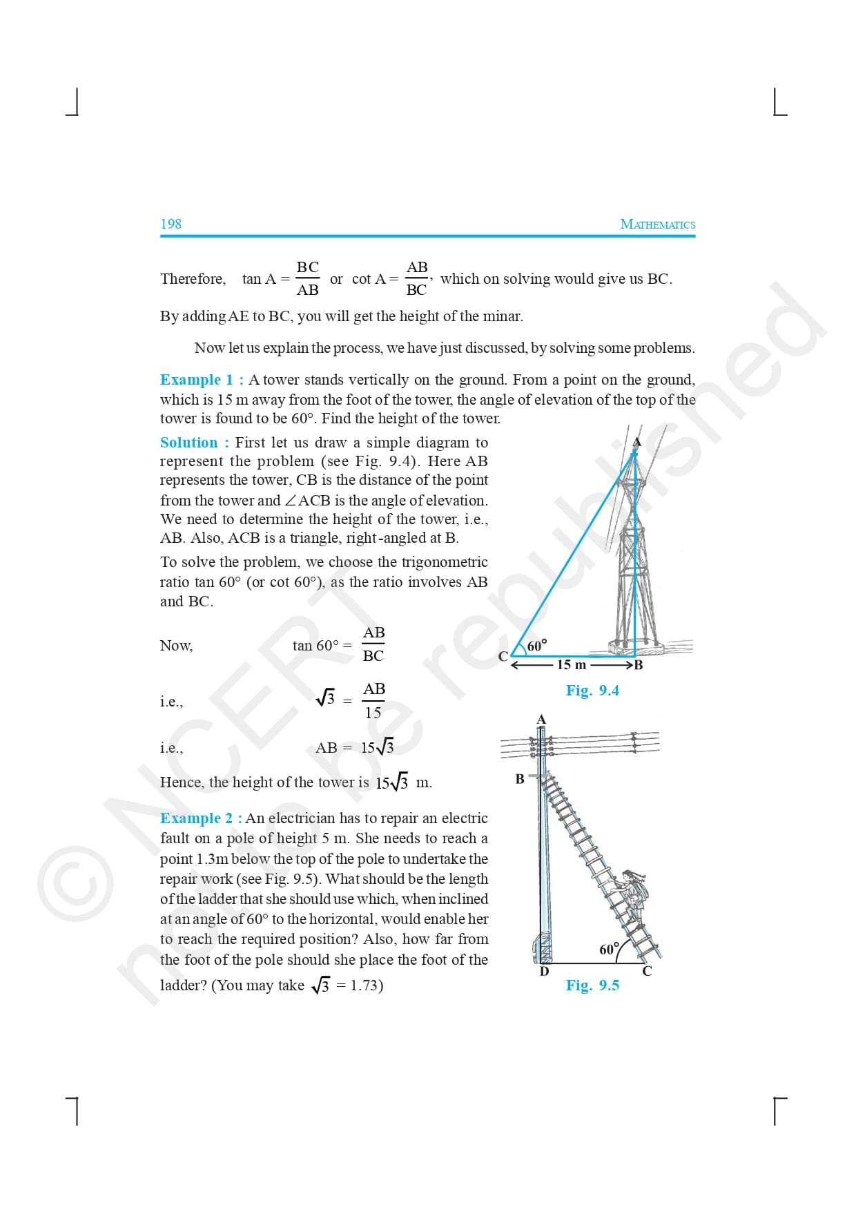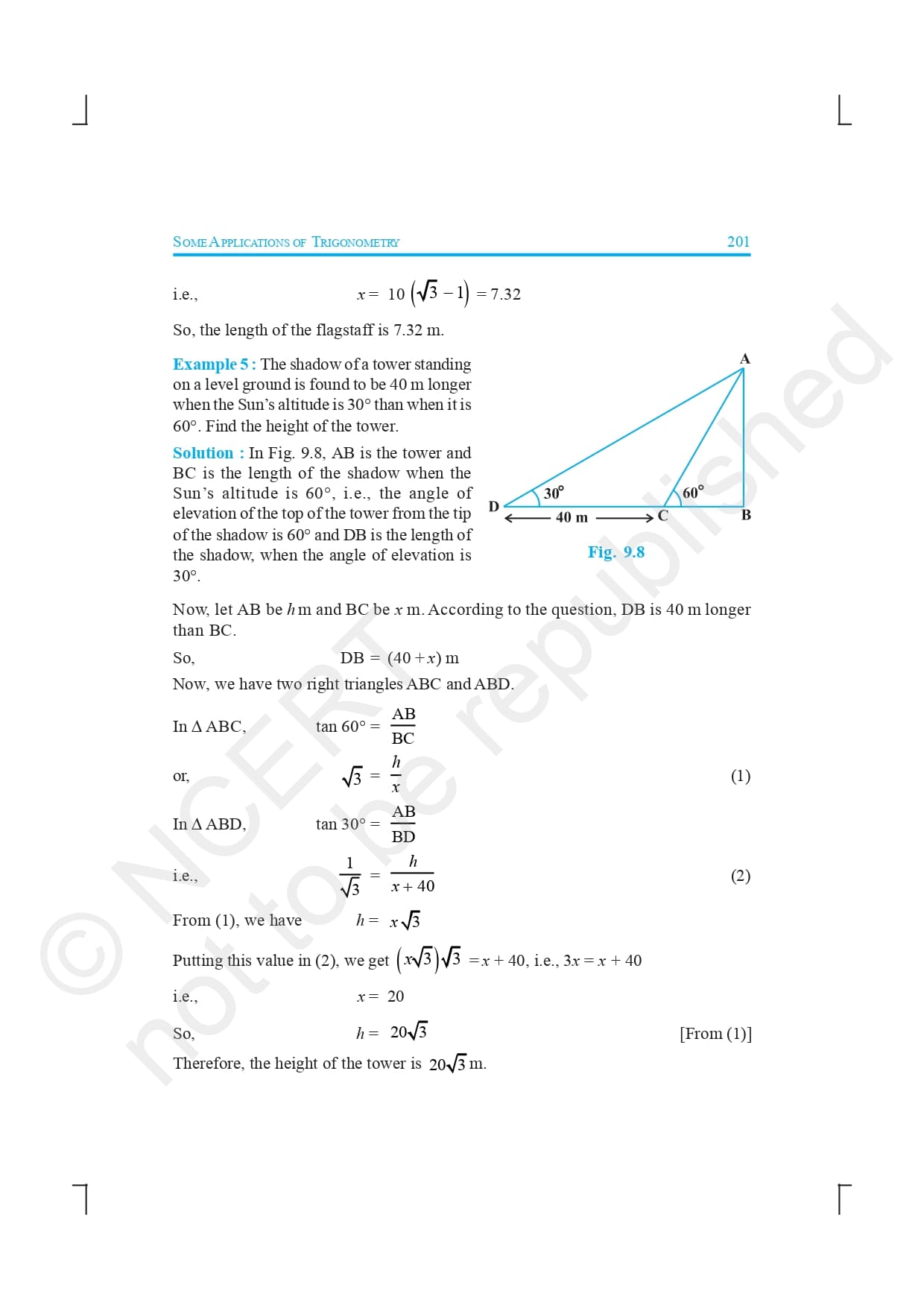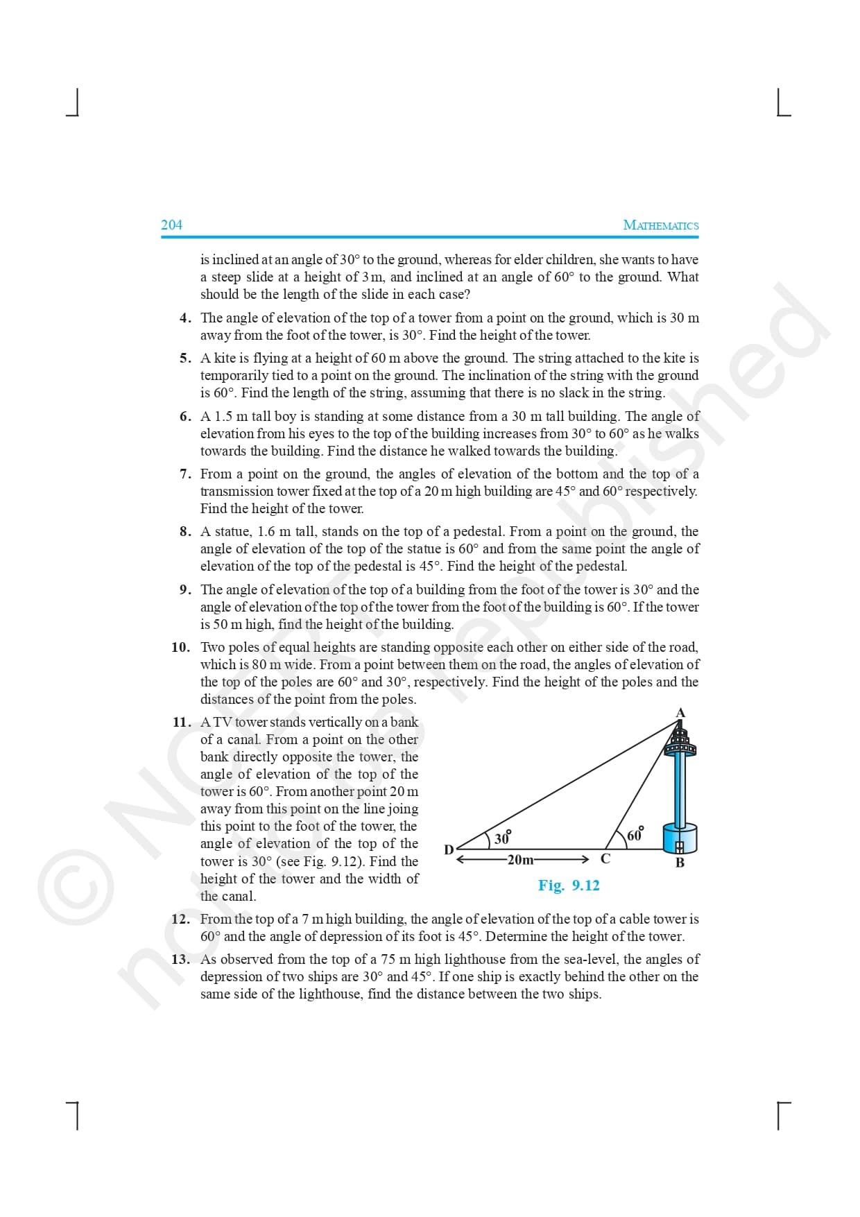 Class 10 Ncert Book Mathematics Chapter 9 – Some Applications of Trigonometry