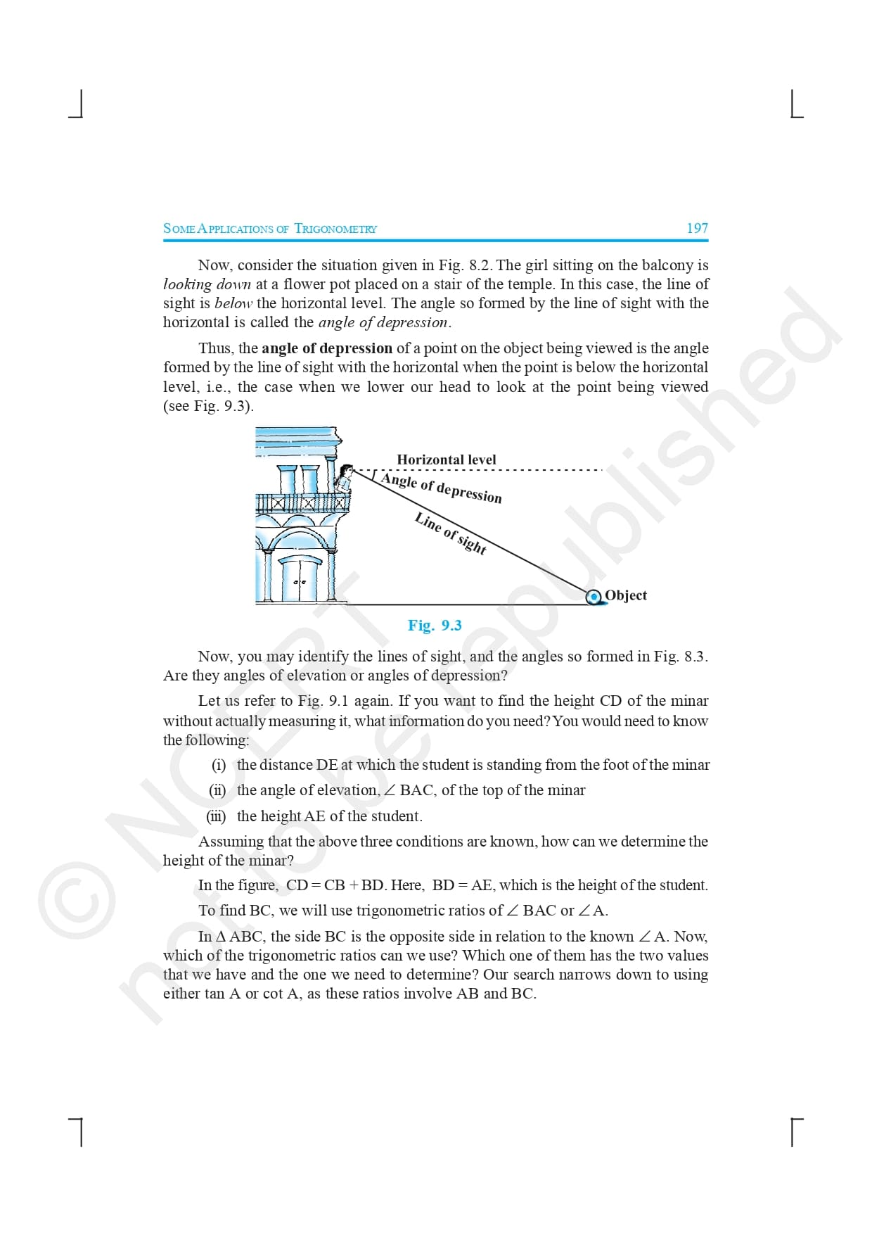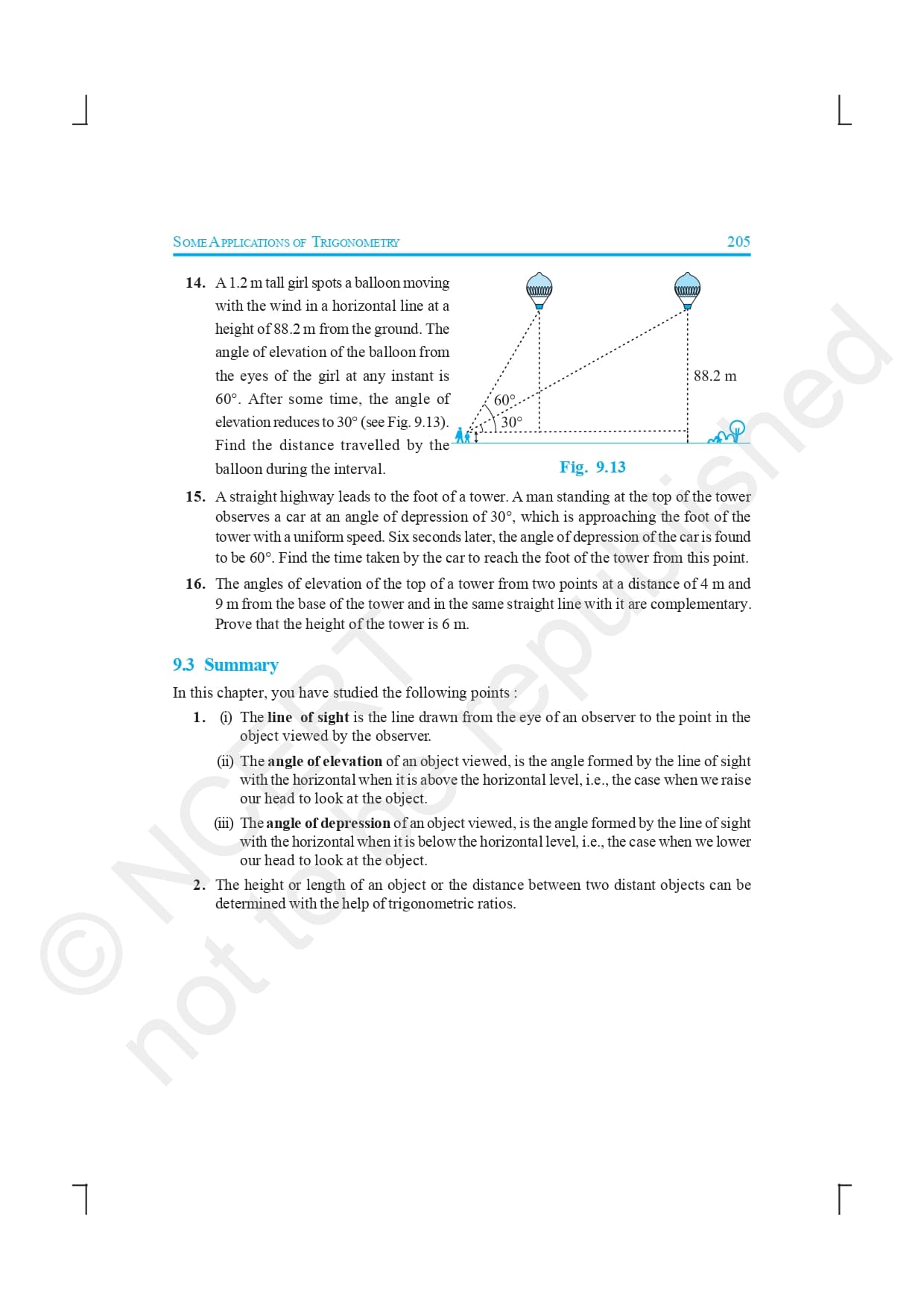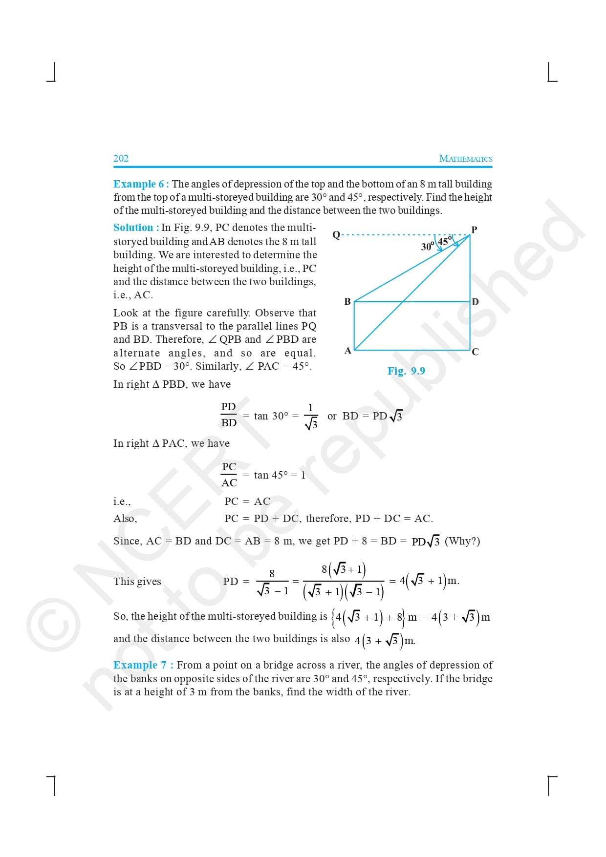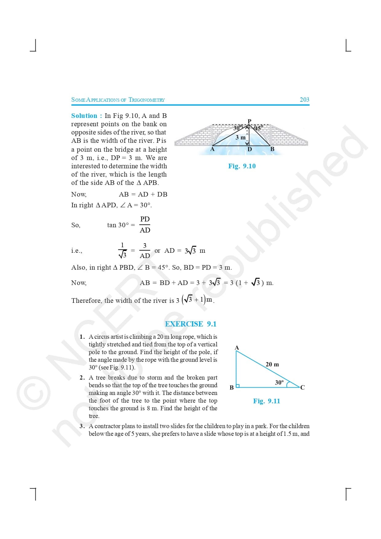 Class 10 Ncert Book Mathematics Chapter 9 – Some Applications of Trigonometry