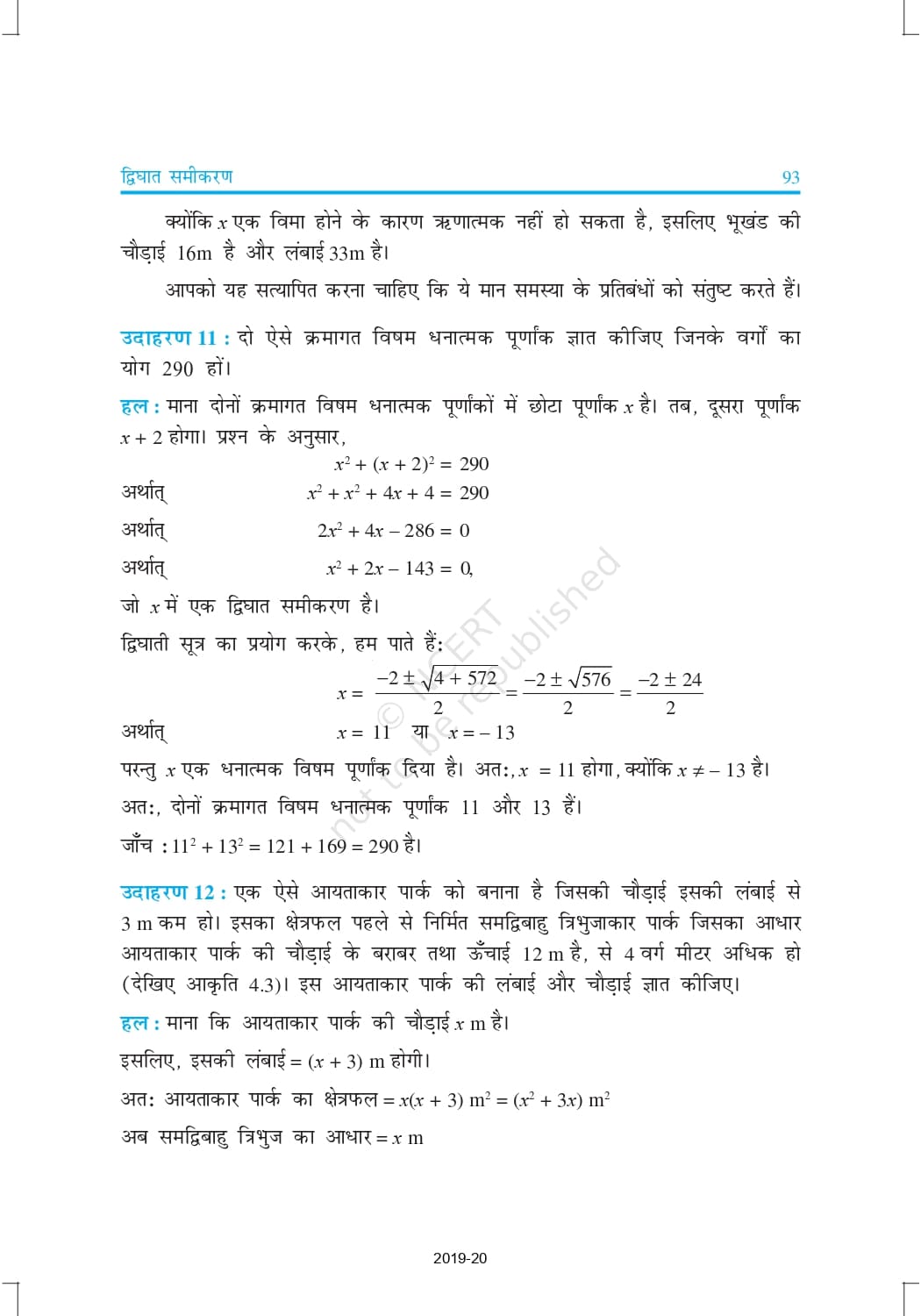 Ncert Books Class 10 गणित – Chapter 4 – द्विघात समीकरण