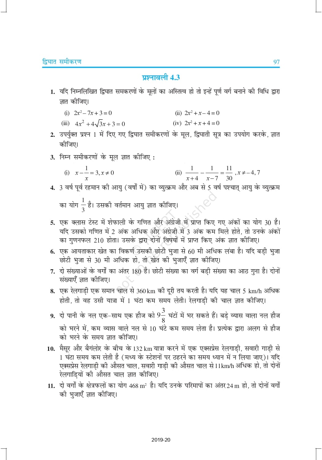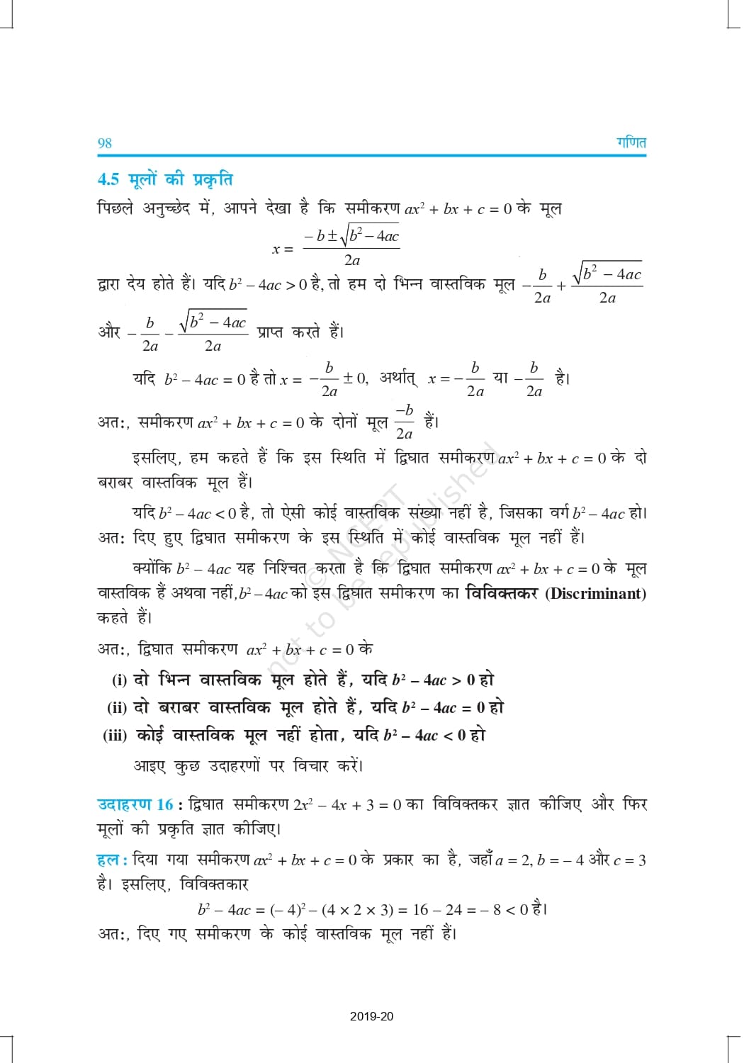 Class 10 Ncert Book गणित Chapter 4 – द्विघात समीकरण