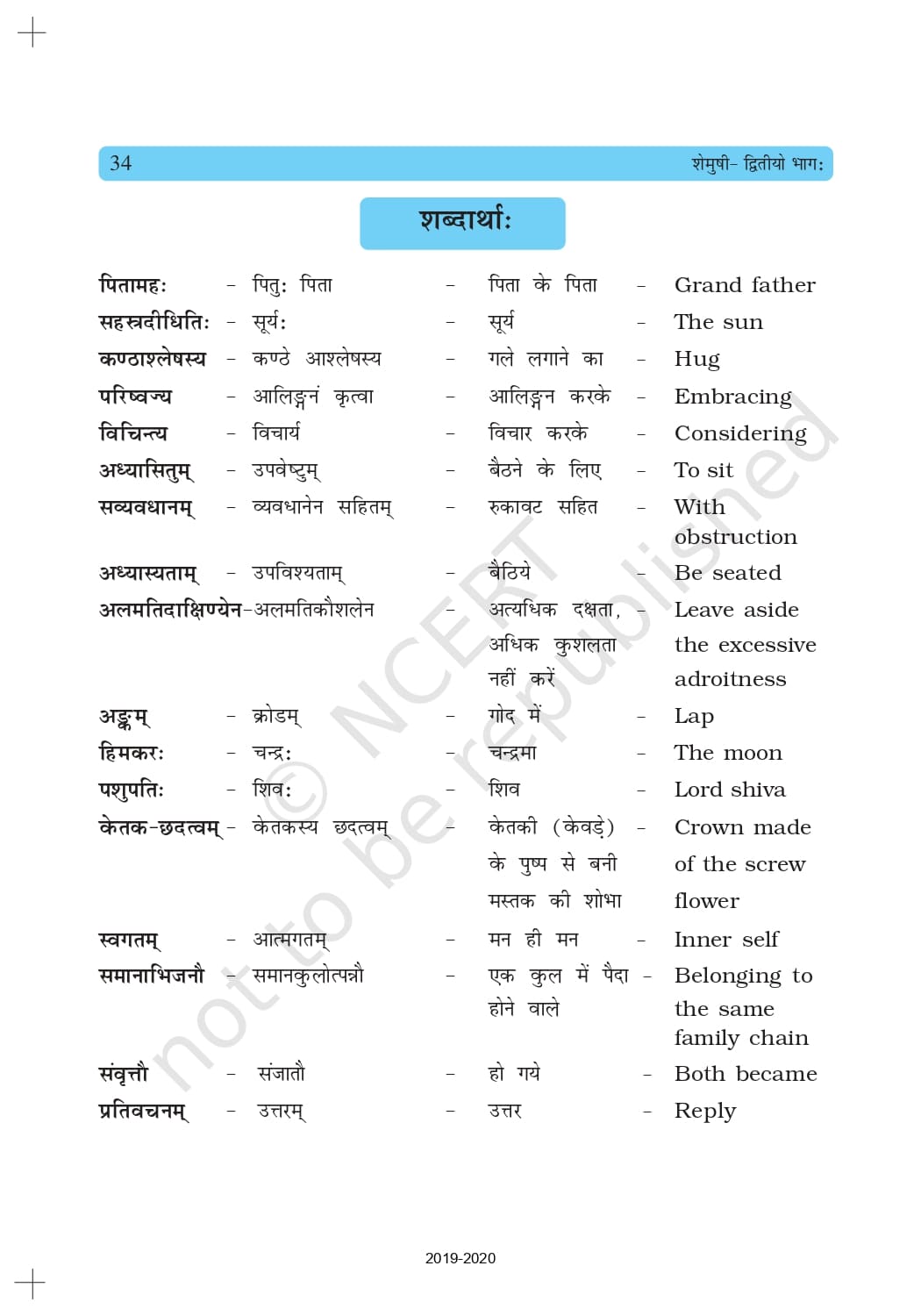 Ncert Book for Class 10 Sanskrit SHEMUSHI Chapter-wise – Free PDF Download