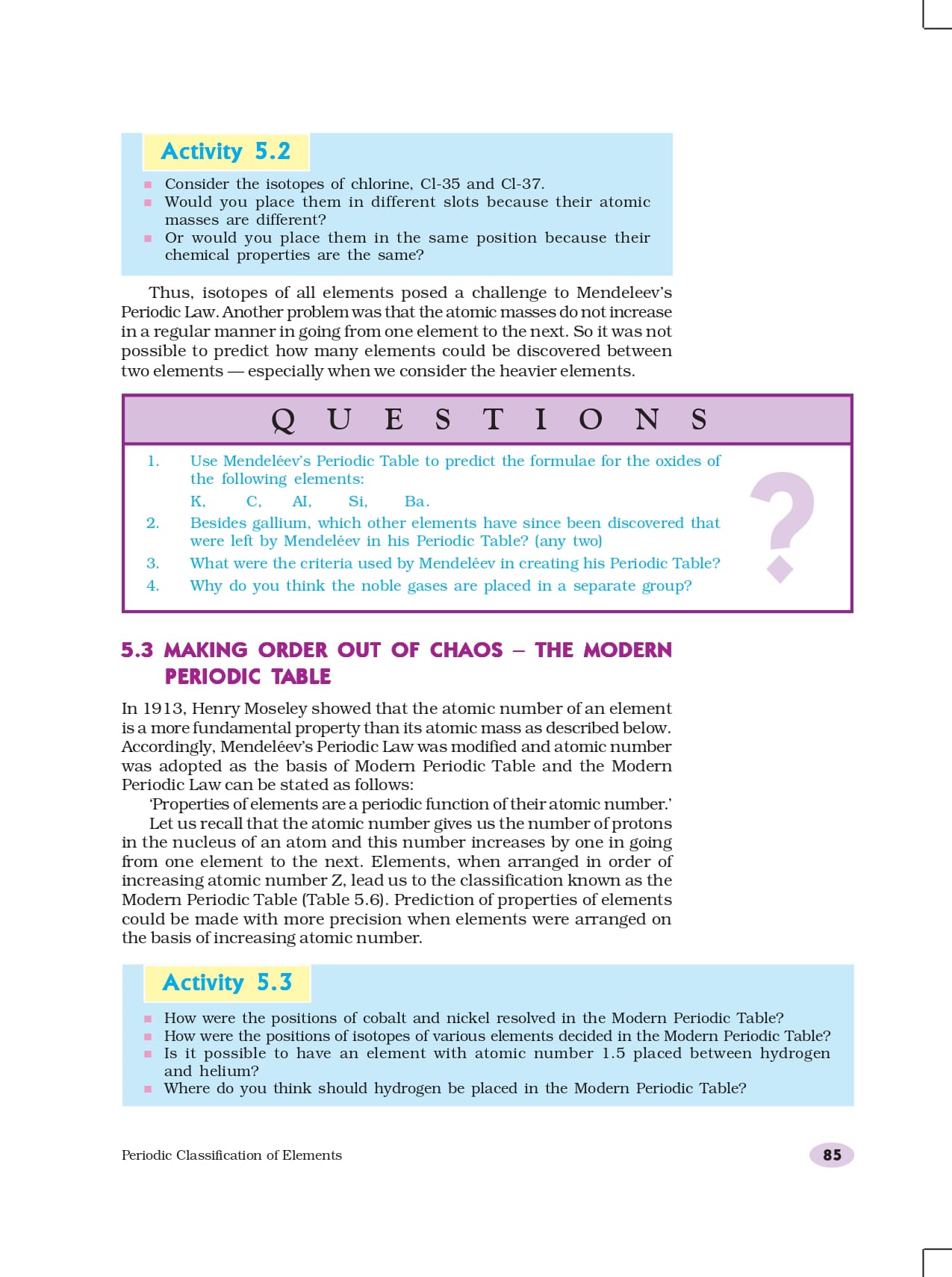 Ncert Books Class 10 Science – Chapter 5 – Periodic Classification of Elements