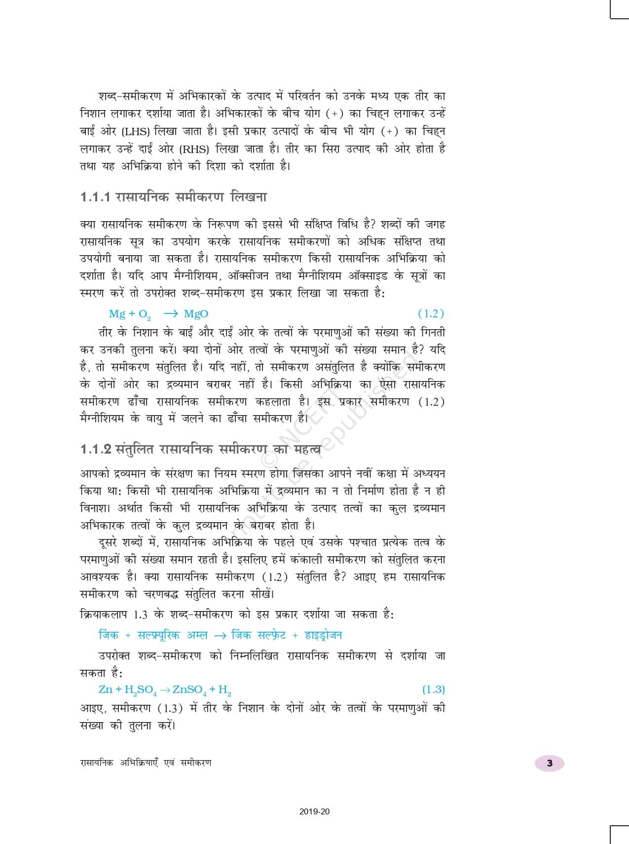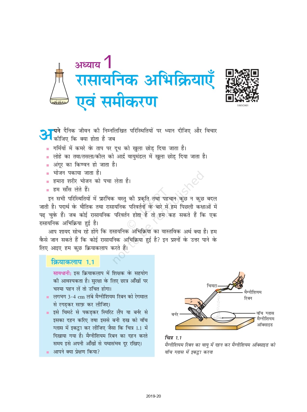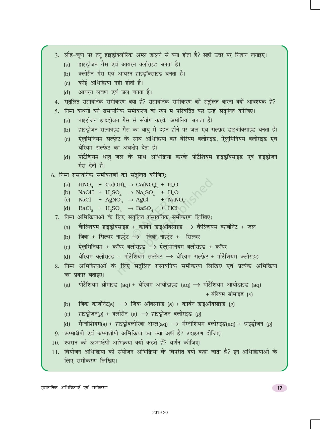 - पाठ 1: रासायनिक अभिक्रियाएं एवं समीकरण