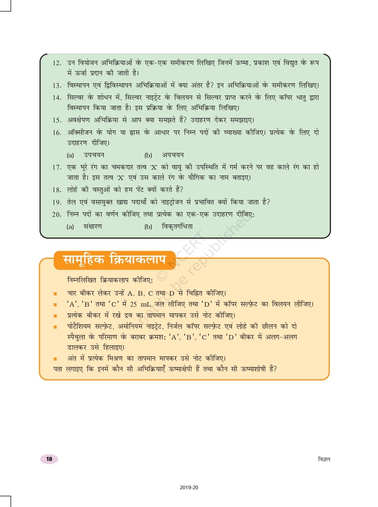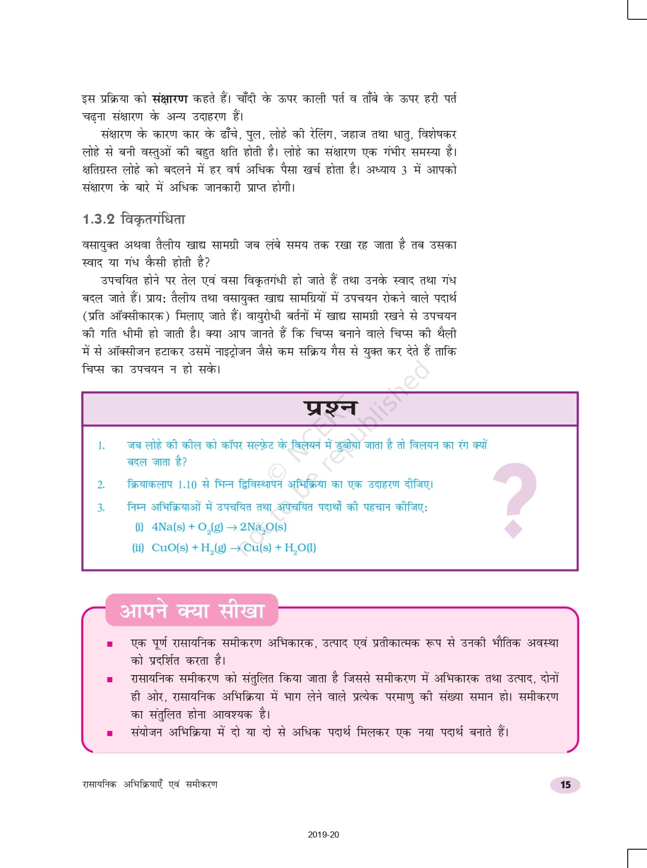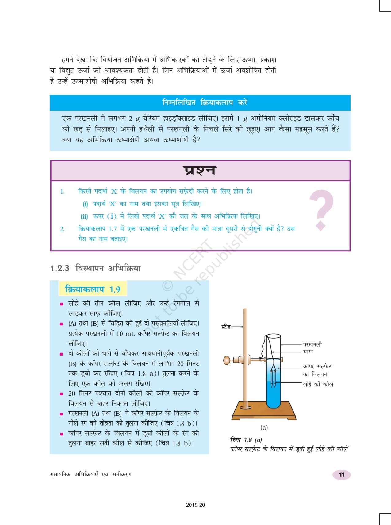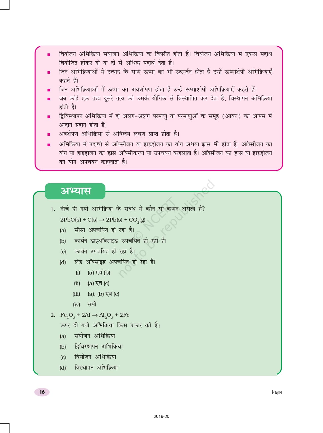 Class 10 Ncert Book Science in Hindi Medium Chapter 1 – रासायनिक अभिक्रियाएं एवं समीकरण
