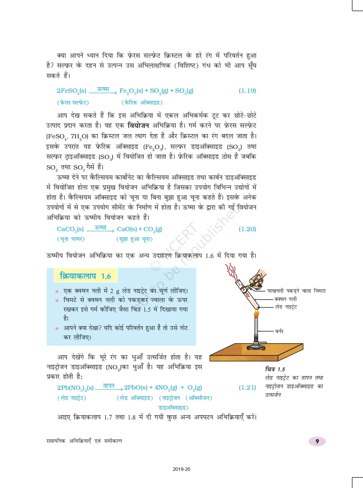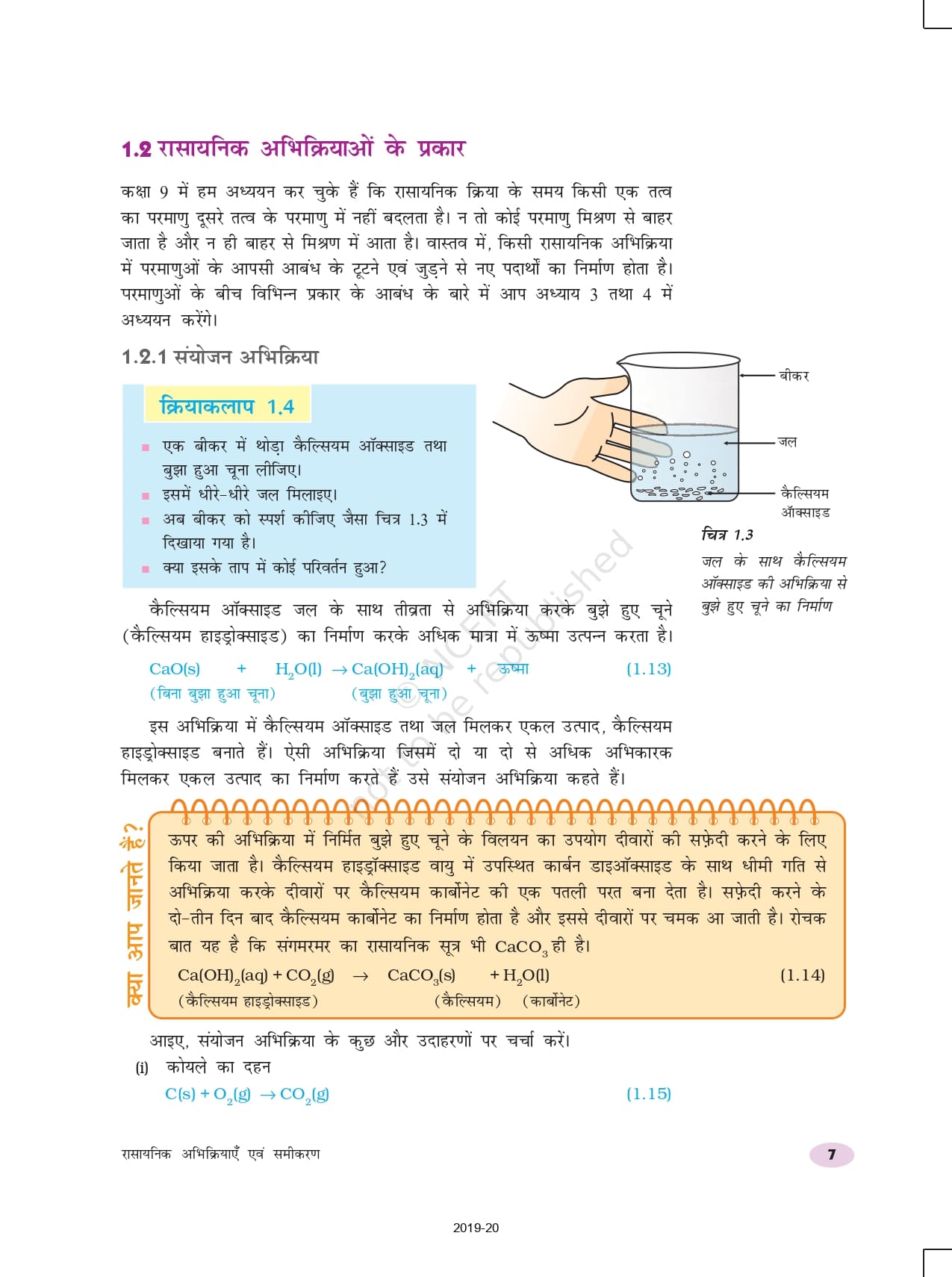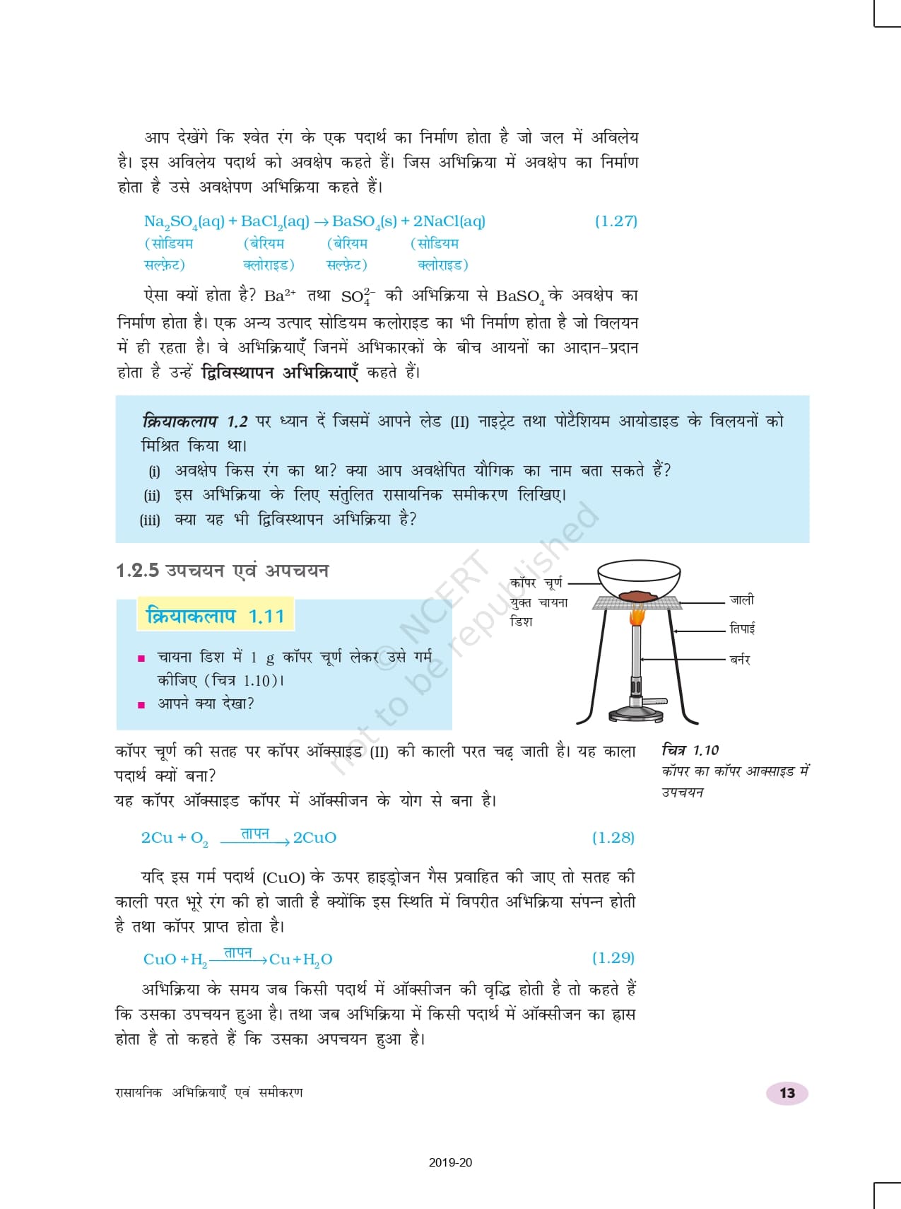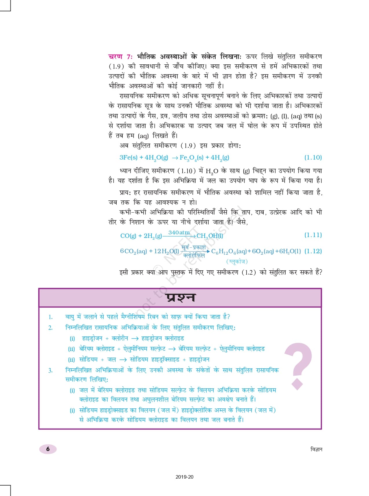 Class 10 Ncert Book Science in Hindi Medium Chapter 1 – रासायनिक अभिक्रियाएं एवं समीकरण