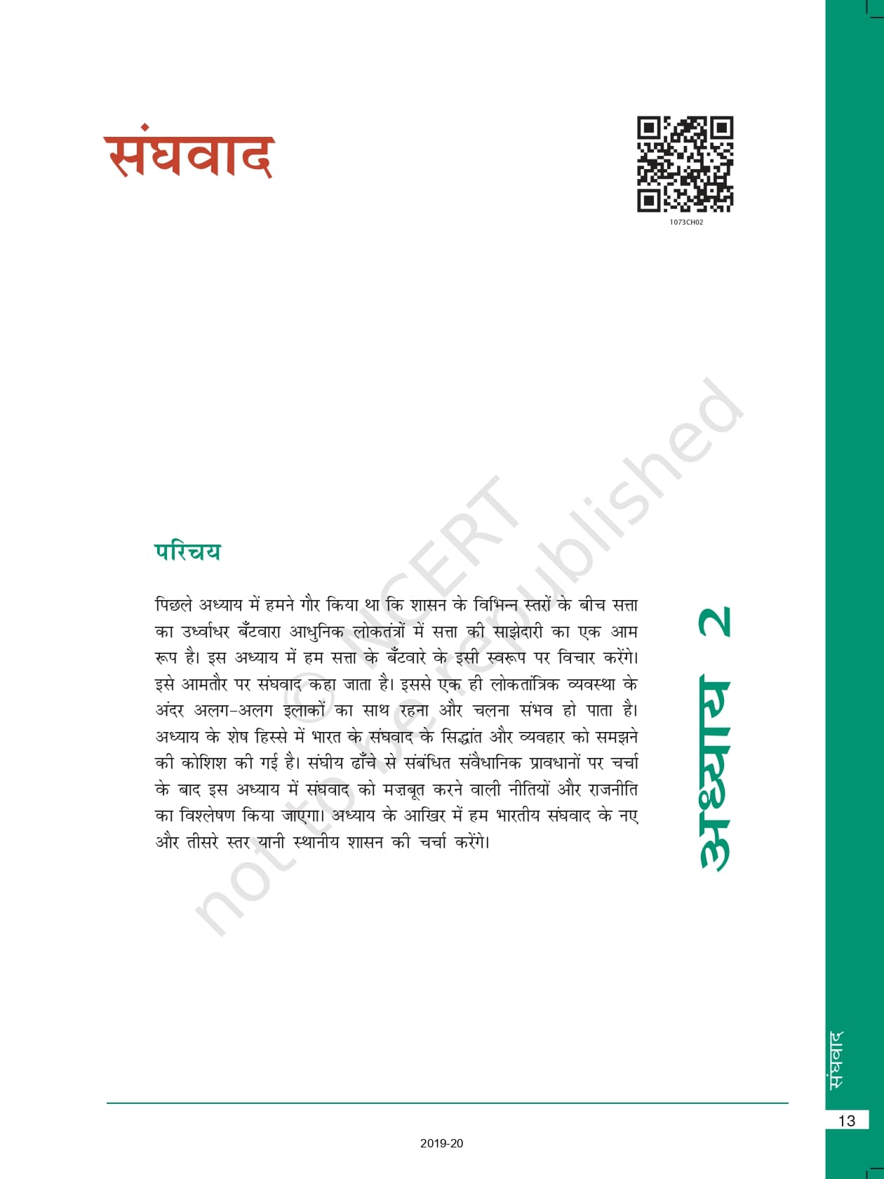 - Chapter 2: संघवाद