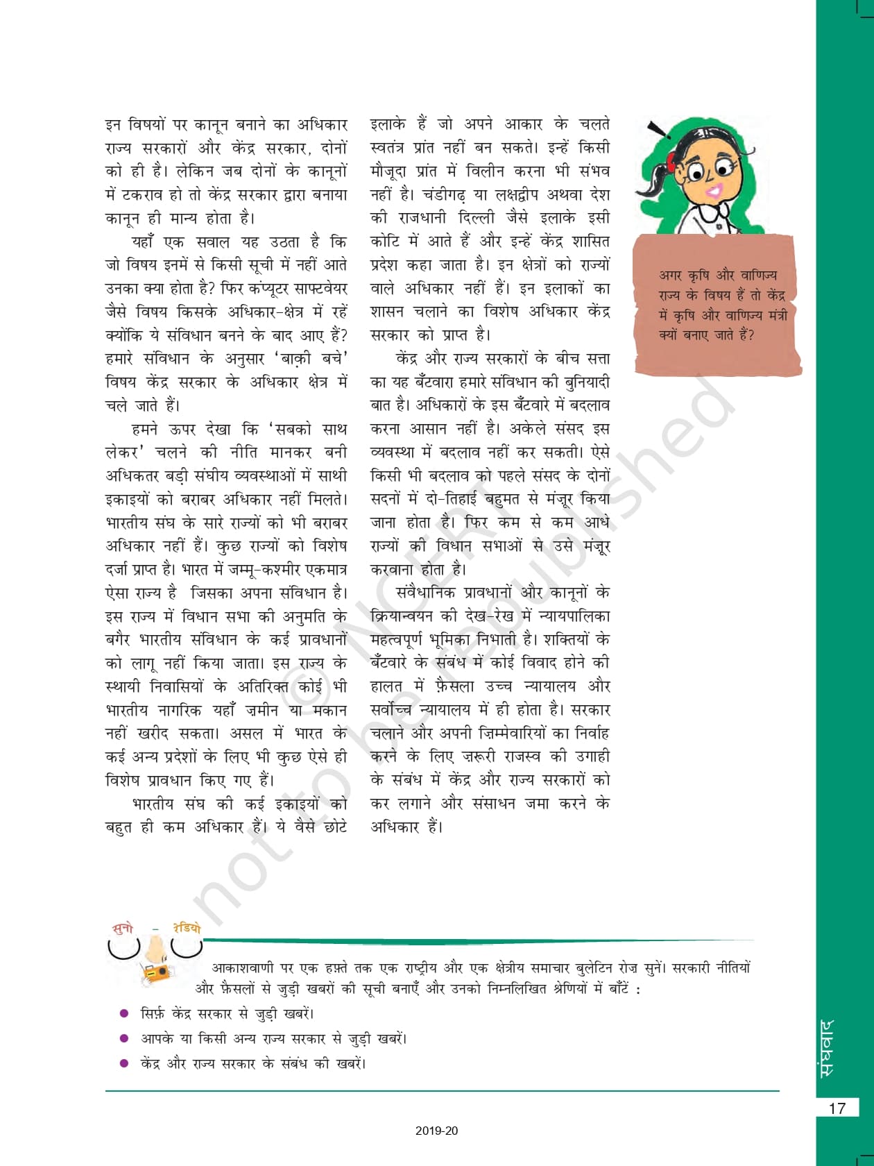 Class 10 Ncert Book Social Science (राजनीति विज्ञान) Chapter 2 – संघवाद