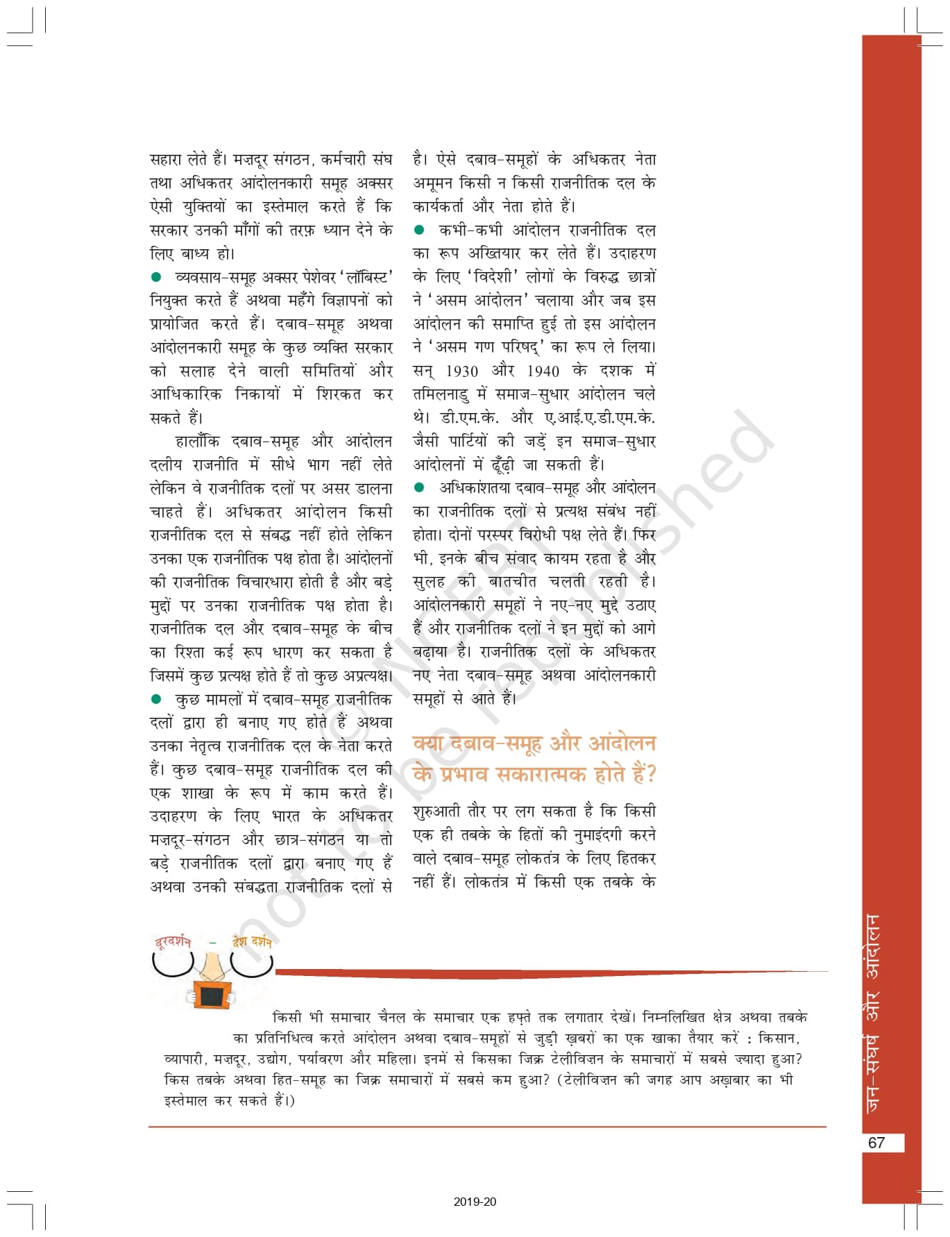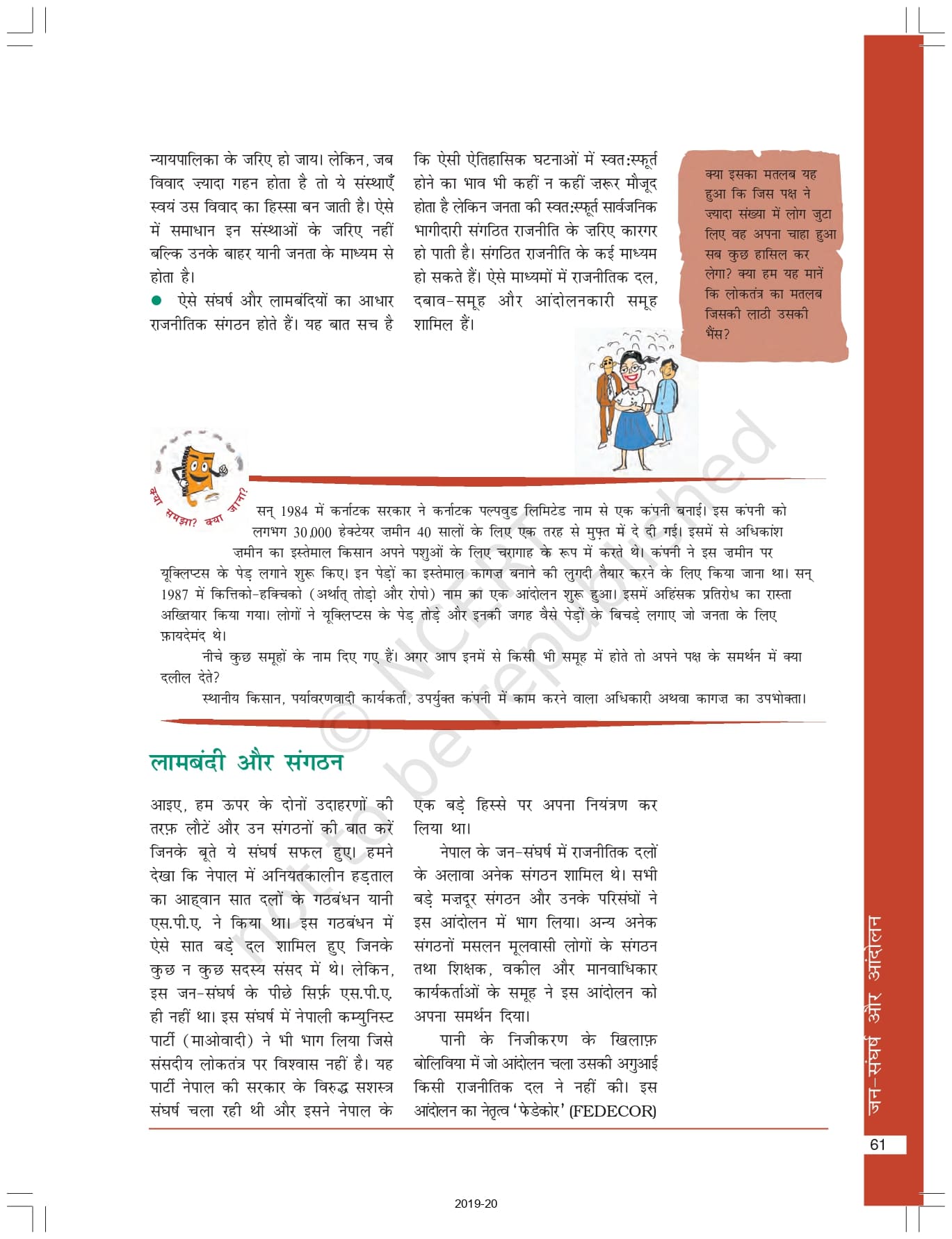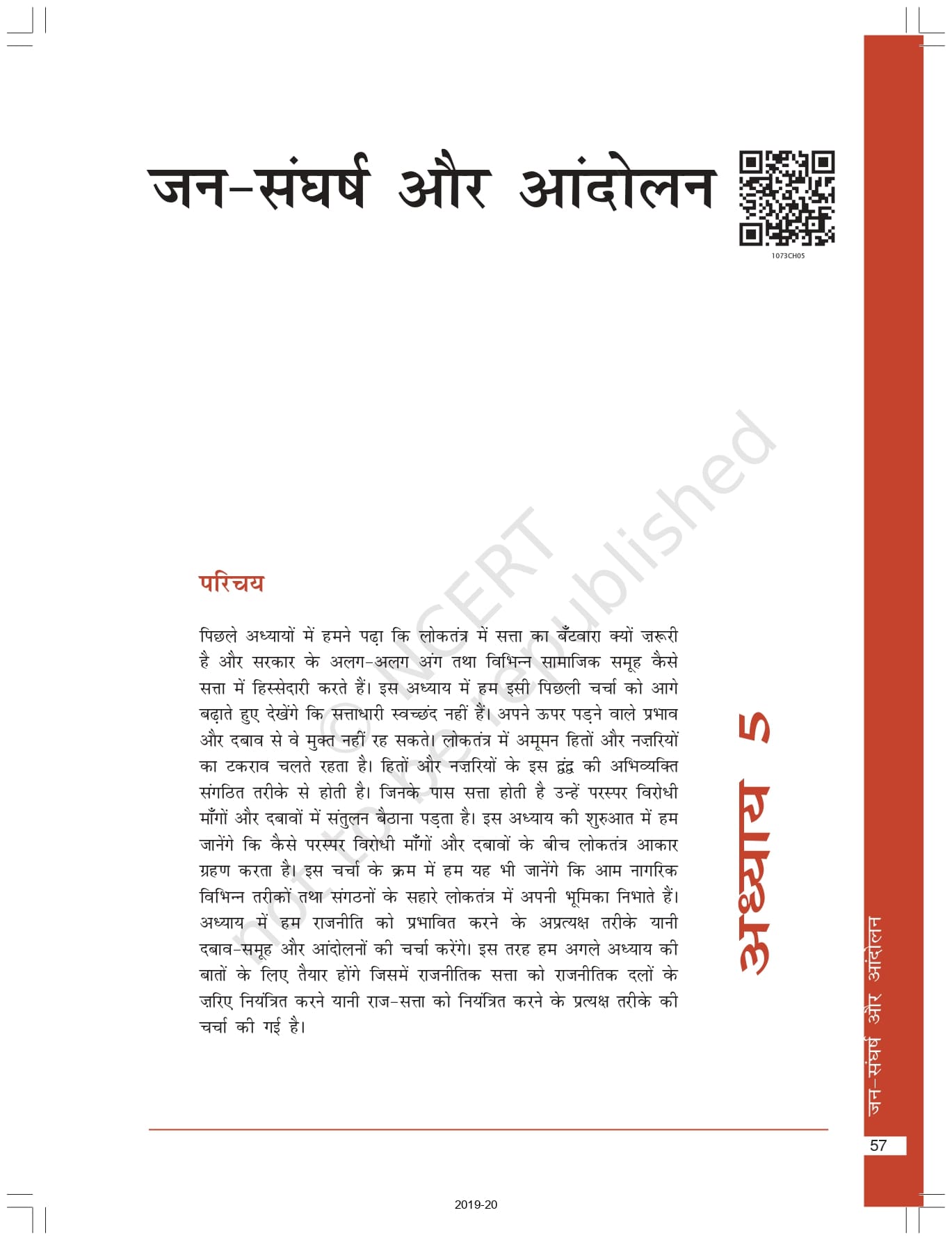 Class 10 Ncert Book Social Science (राजनीति विज्ञान) Chapter 5 – जन-संघर्ष और आंदोलन