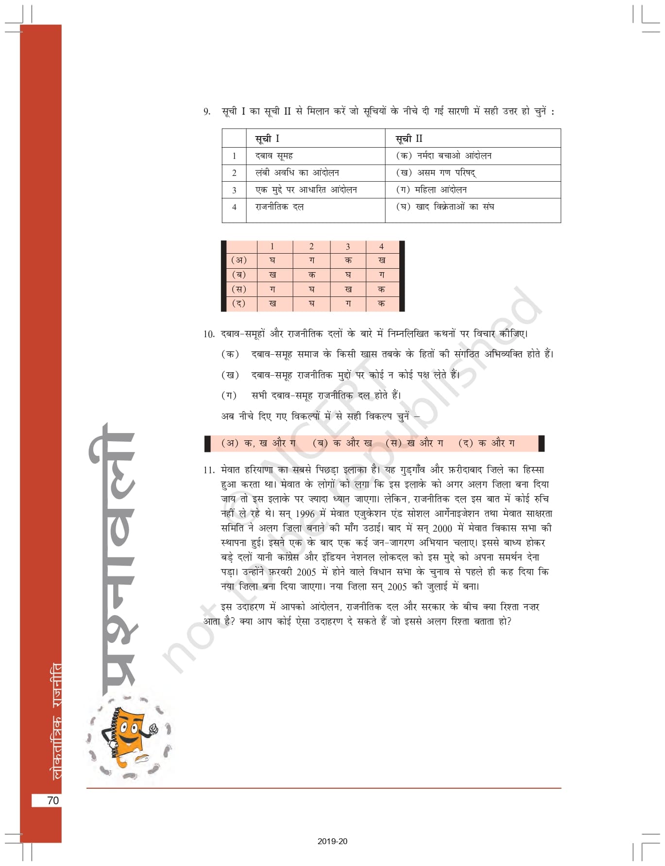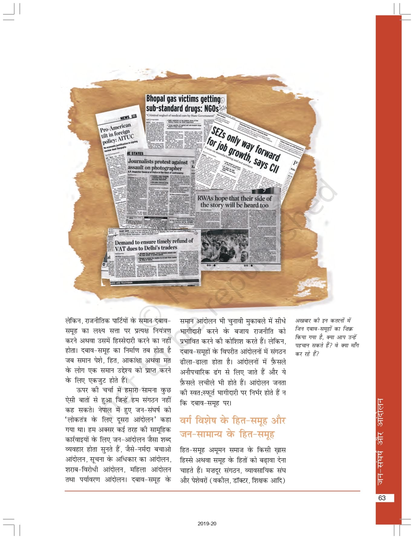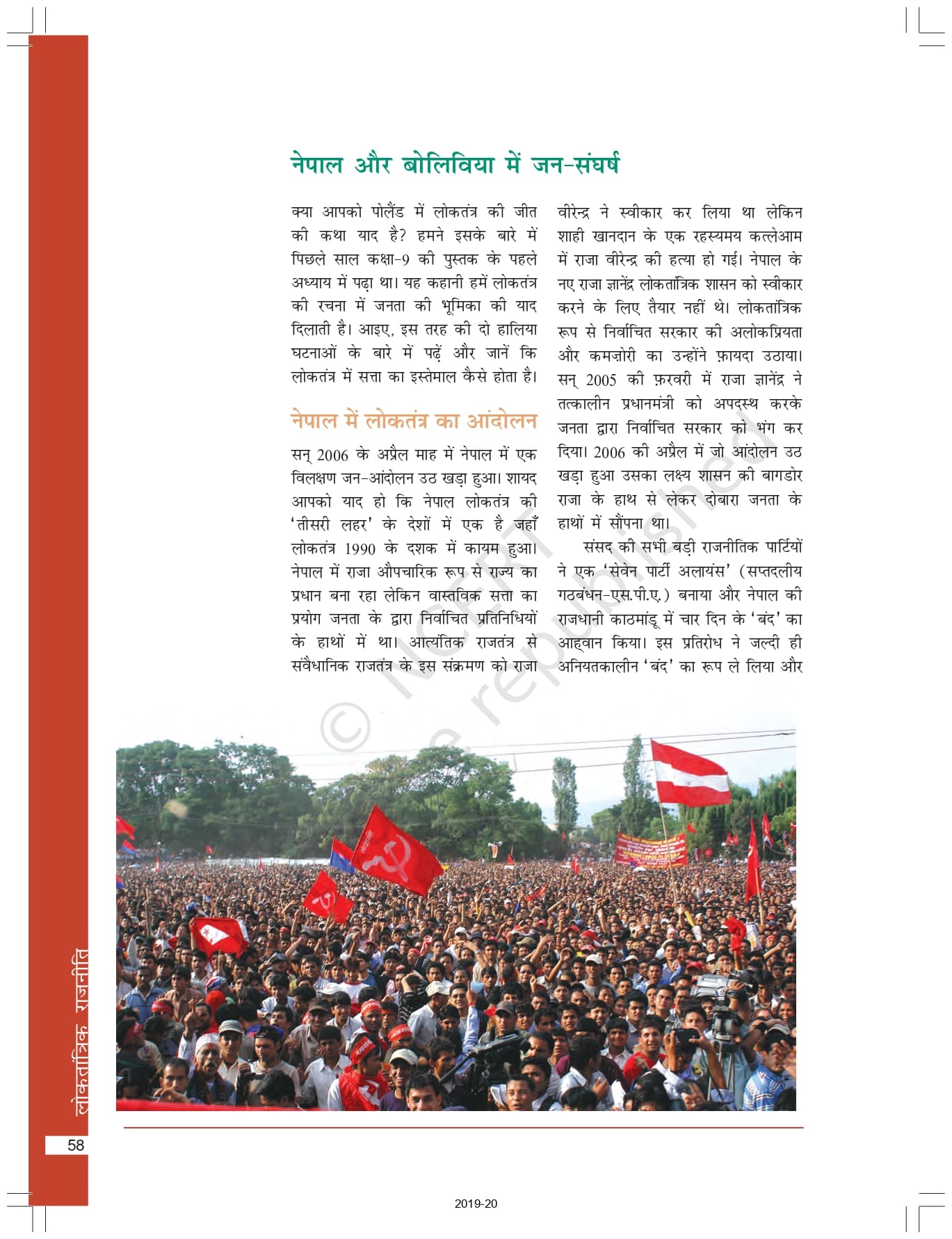 Class 10 Ncert Book Social Science (राजनीति विज्ञान) Chapter 5 – जन-संघर्ष और आंदोलन