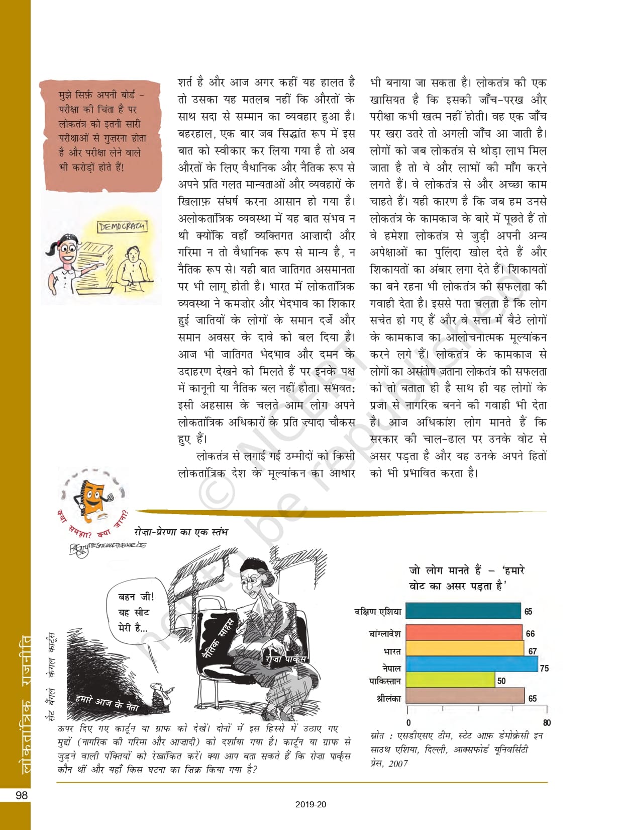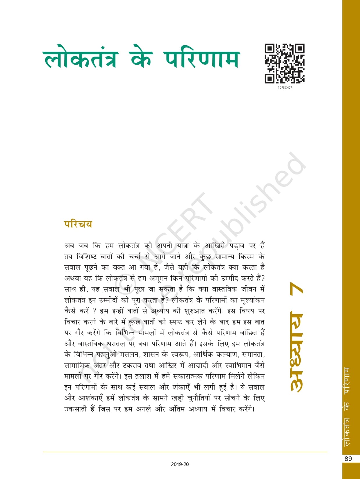 Class 10 Ncert Book Social Science (राजनीति विज्ञान) Chapter 7 – लोकतंत्र के परिणाम