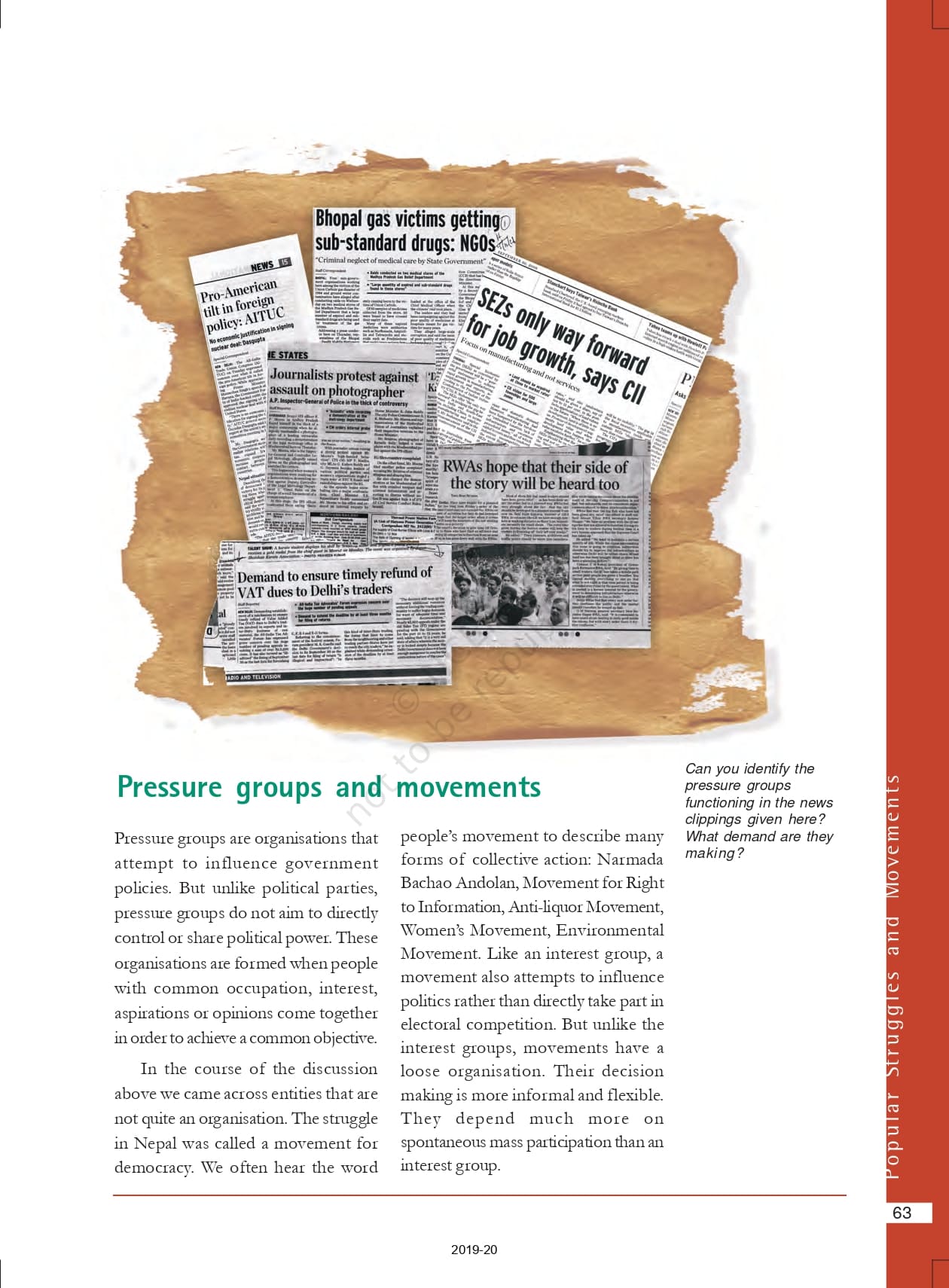 Class 10 Ncert Book Social Science (Political Science) Chapter 5 – Popular Struggles and Movements