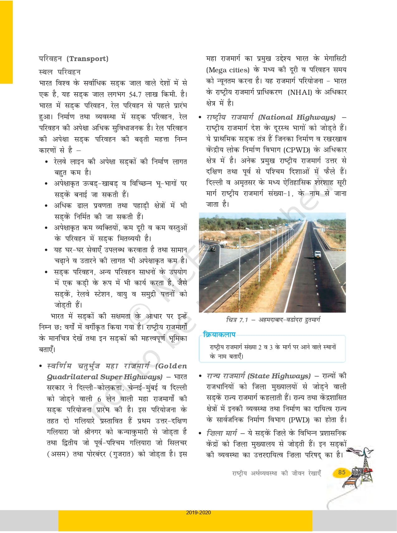 Class 10 Ncert Book Social Science (भूगोल) Chapter 7 – राष्ट्रीय अर्थव्यवस्था की जीवन रेखाएँ
