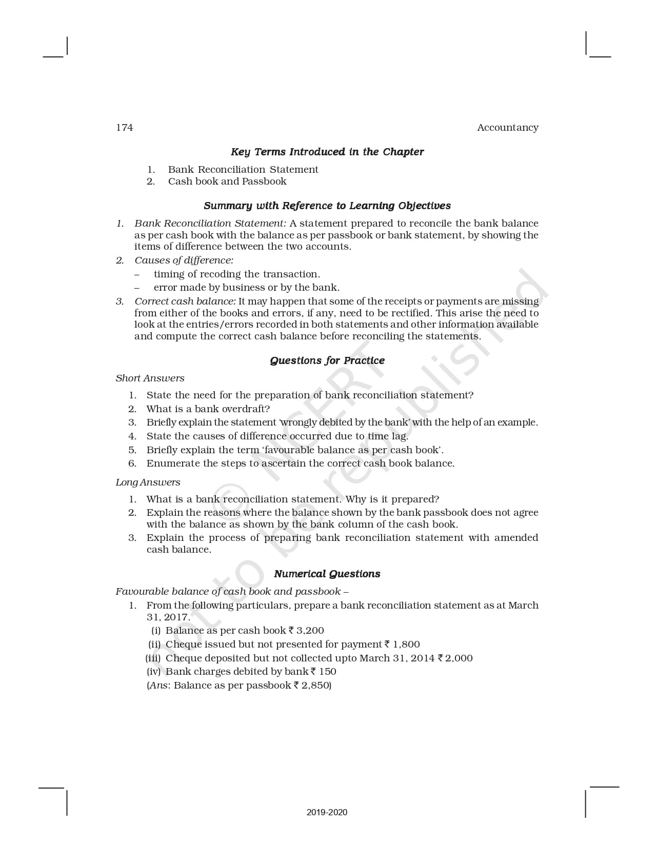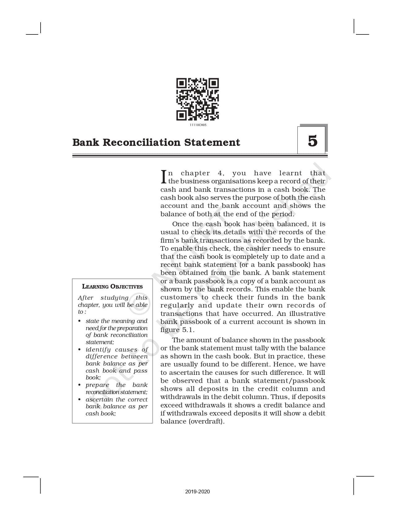 Ncert Books Class 11 Accountancy – Chapter 5 – Bank Reconciliation Statement – Pdf Download