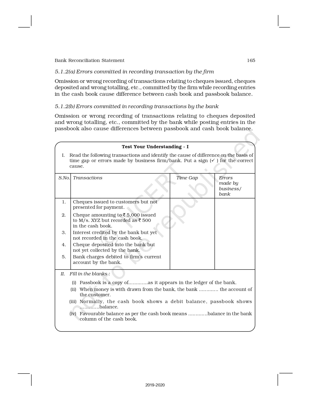 Ncert Books Class 11 Accountancy Chapter 5 – Bank Reconciliation Statement