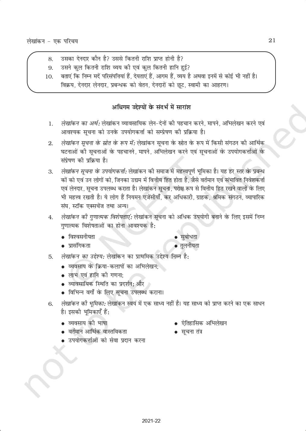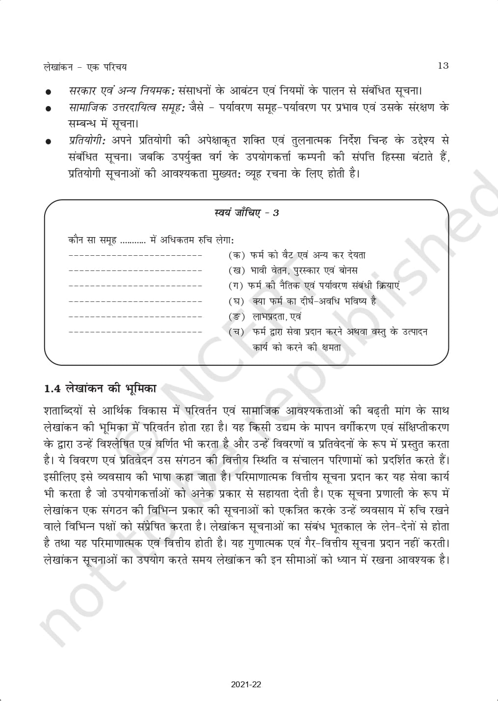 Class 11 Accountancy लेखाशास्त्र Ncert Book (Chapter 1)