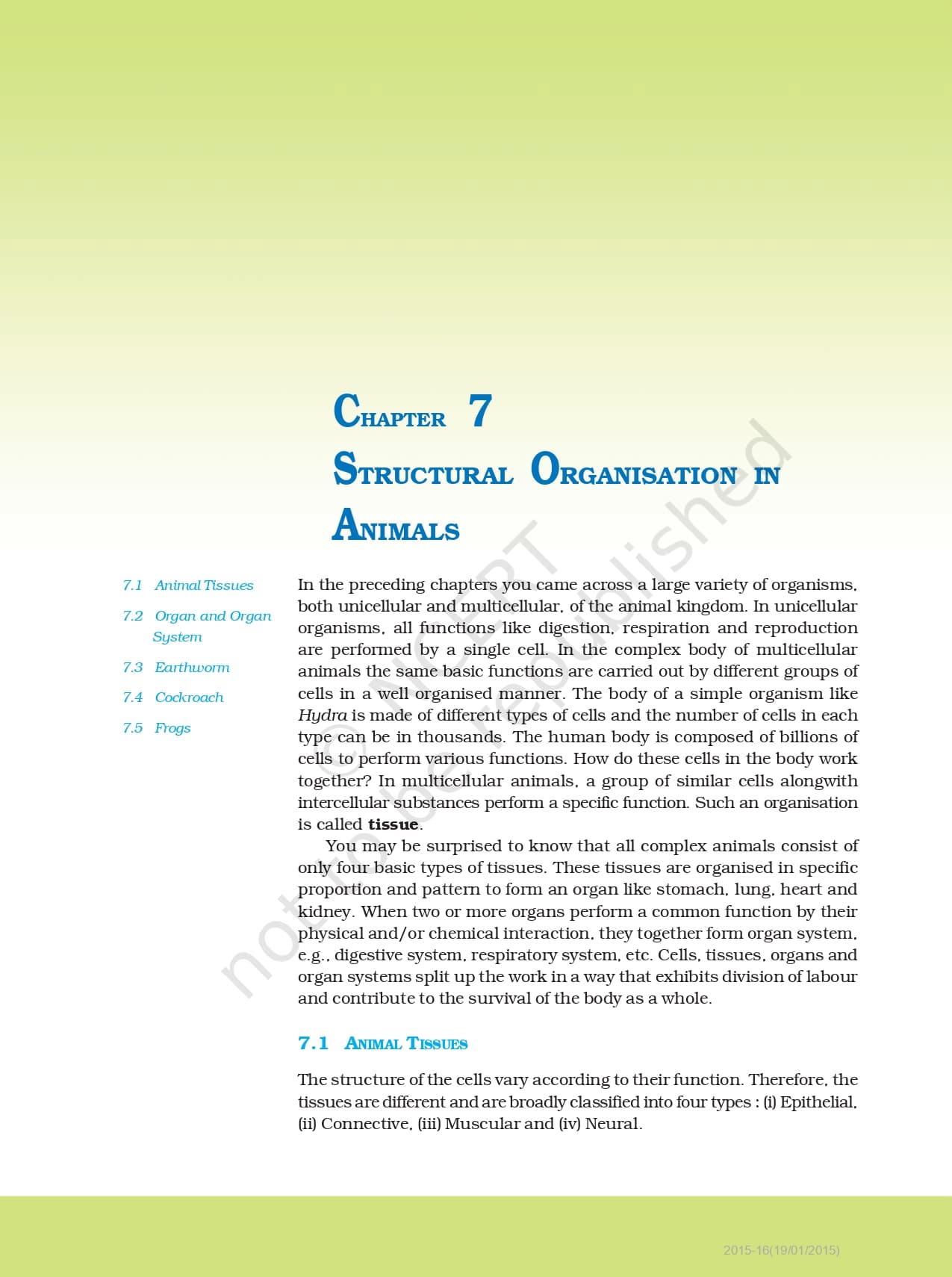 Chapter 7: Structural Organisation in Animals
