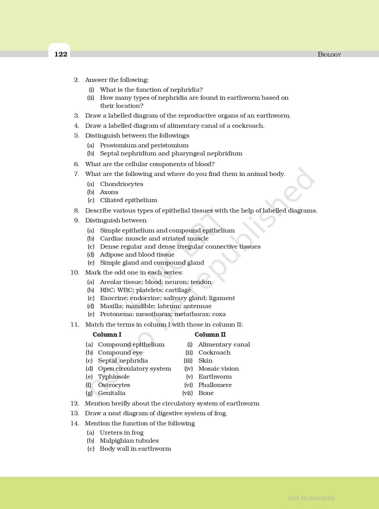 Ncert Books Class 11 Biology – Chapter 7 – Structural Organisation in Animals – Pdf Download