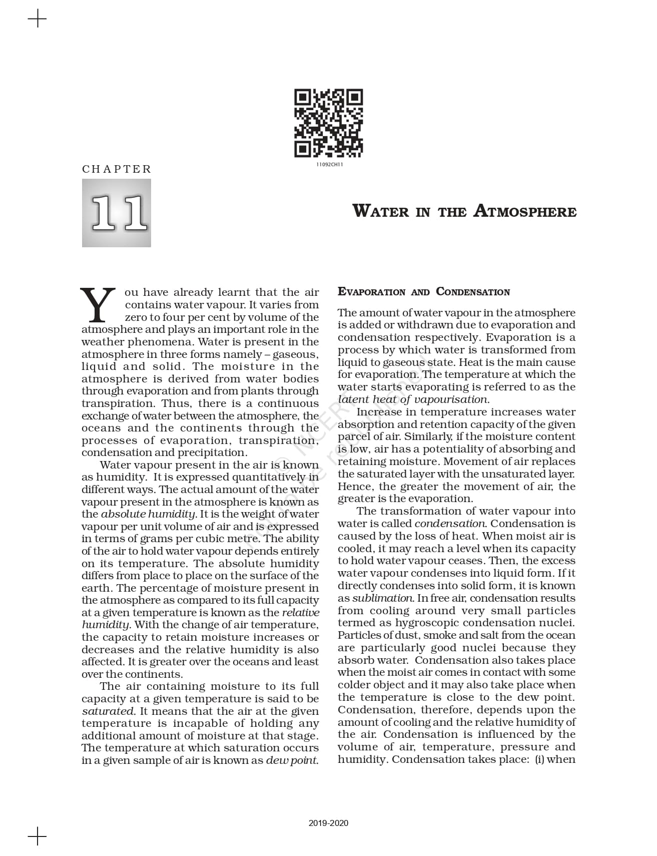 Ncert Books Class 11 Fundamental of Physical Geography – Chapter 11 – Water in the Atmosphere – Pdf Download