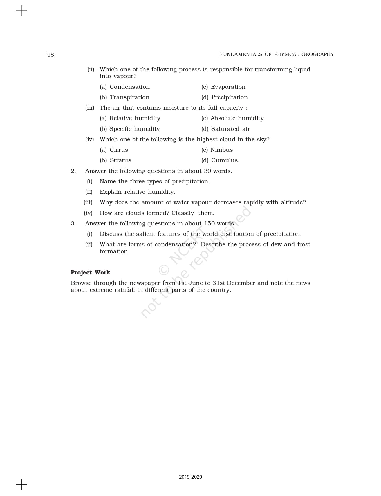 Class 11 Fundamental of Physical Geography Ncert Book Chapter 11 – Water in the Atmosphere