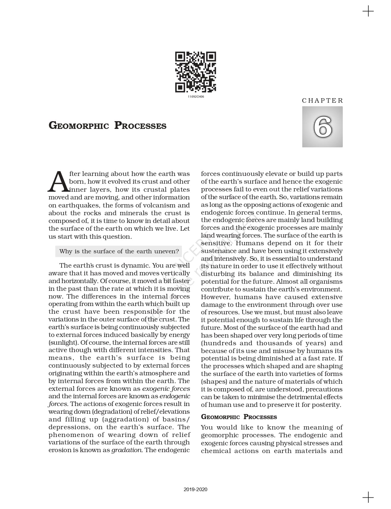 Ncert Books Class 11 Fundamental of Physical Geography – Chapter 6 – Geomorphic Processes – Pdf Download