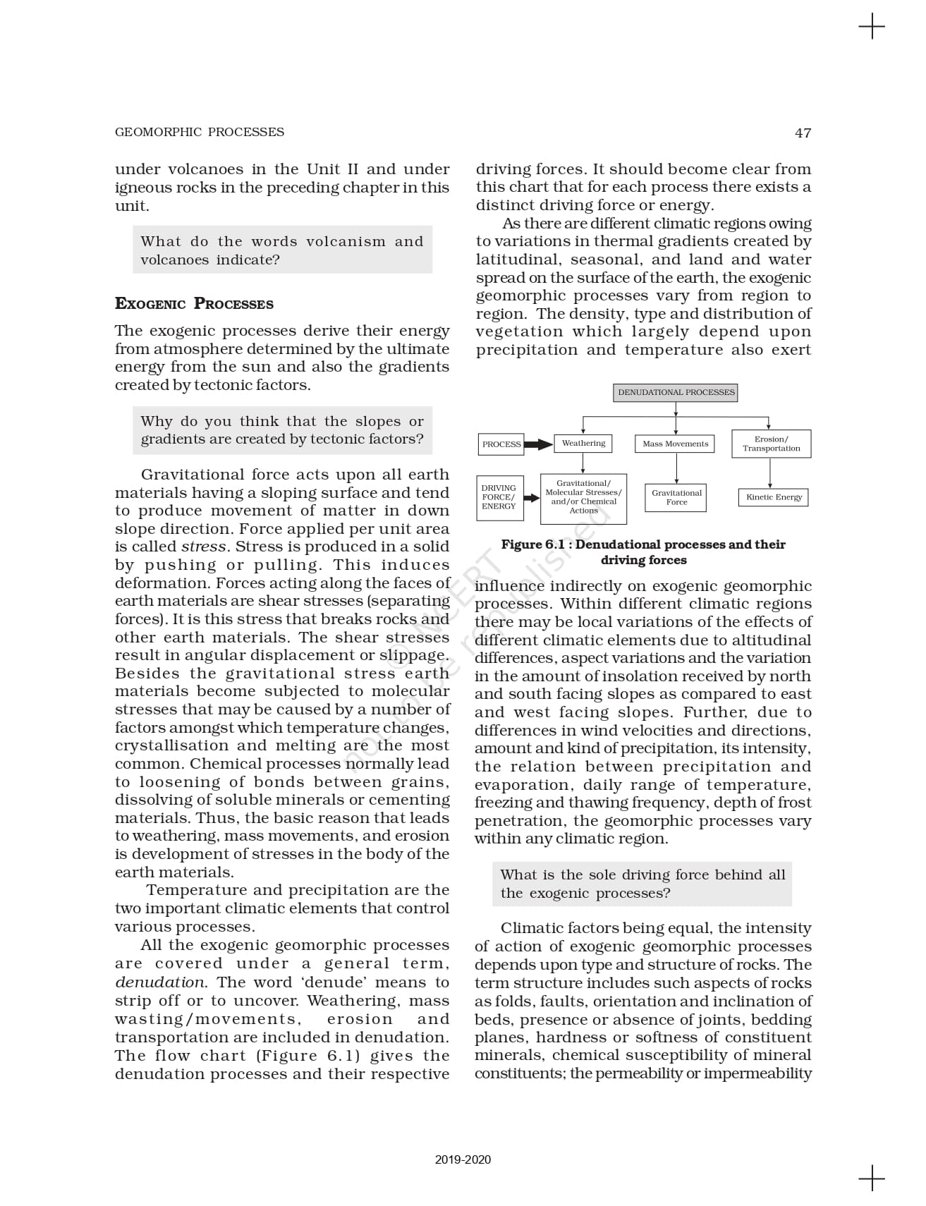 Class 11 Fundamental of Physical Geography Ncert Book Chapter 6 – Geomorphic Processes