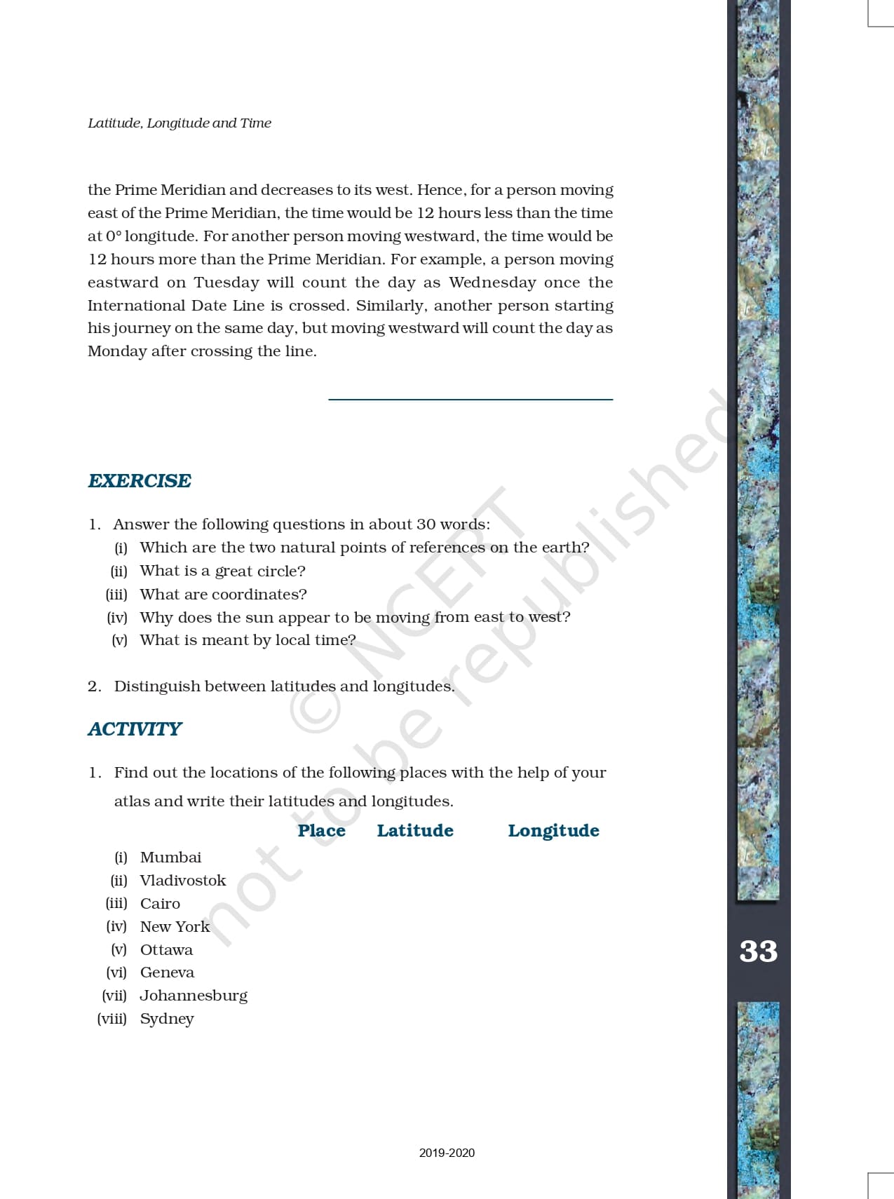 Class 11 Practical Work in Geography Ncert Book Chapter 3 – Latitude, Longitude and Time