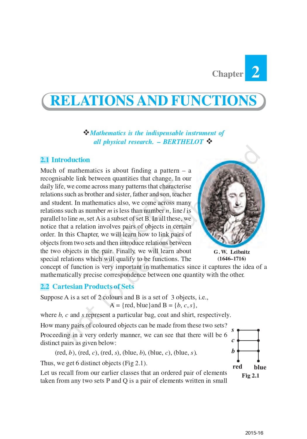 Ncert Books Class 11 Maths – Chapter 2 – Relations and Functions – Pdf Download